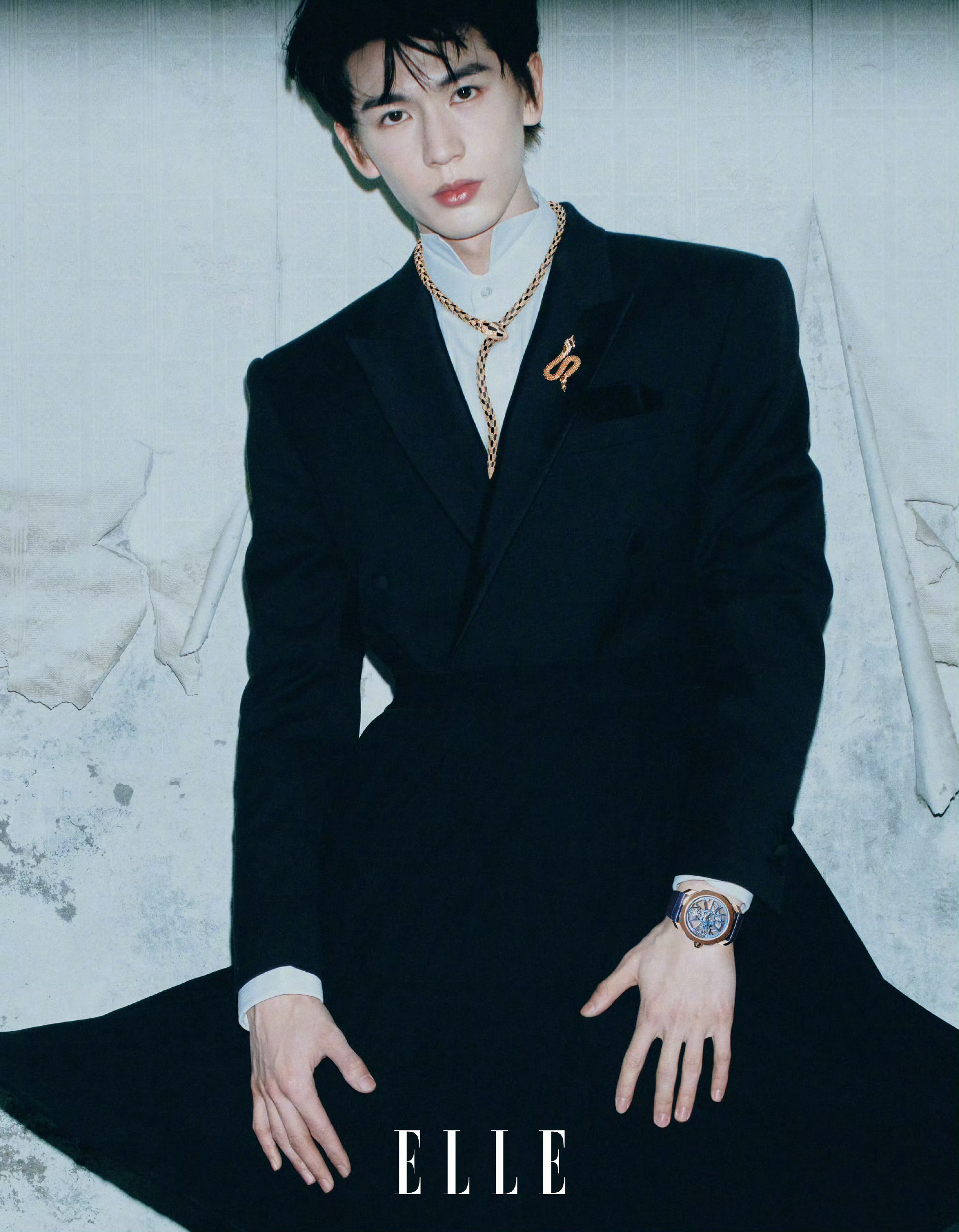 哦莫!张凌赫ELLE大片来了!粉色西装和这个略带占有欲的眼神确定不是在勾引我吗!这个下颌线比我的人生规划还清晰,经典姿势跷脚腿更长(虽然已经很长)