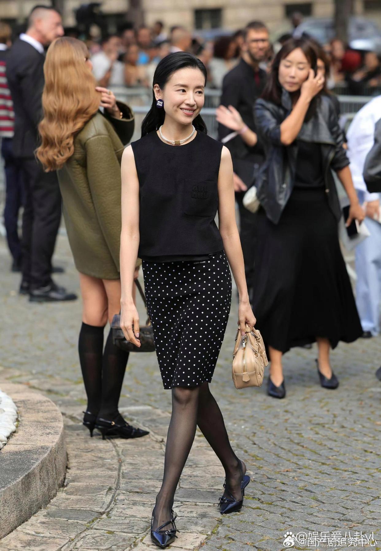 闫妮董洁刘雅瑟同框董洁黑色一字带细高跟