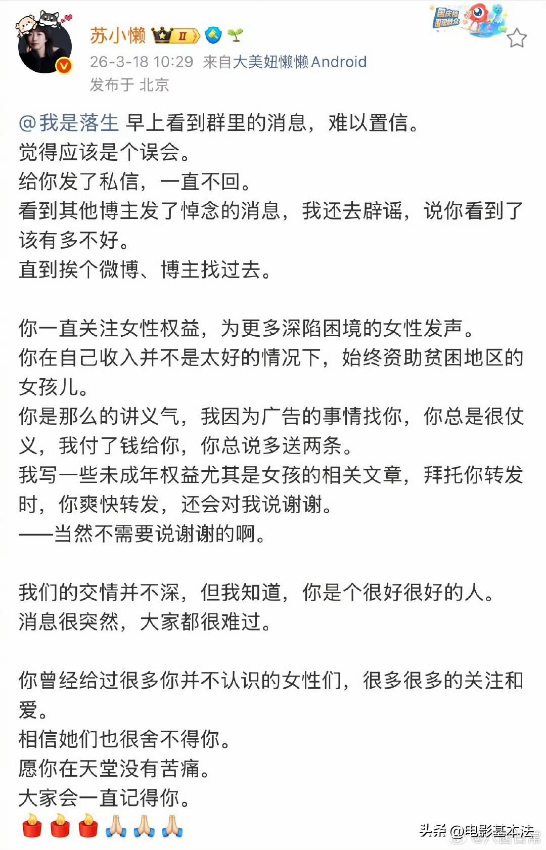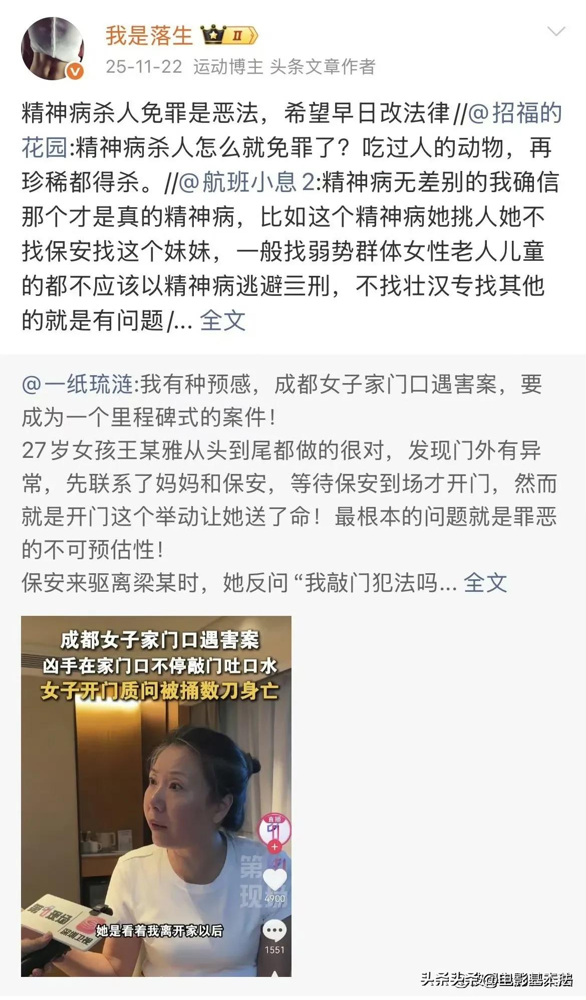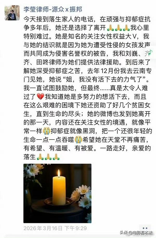 认为不给彩礼就是剥削女性的极端女拳网红“落生”,选择了自行了断。 她所有的观点都很撕裂,比如她支持“精神病人杀人不能免罪”,但只限女性,她认为女精神病人杀人免罪是天经地义,社会应该保护这种女精神病人,因为社会亏欠女性太多,同时她认为男精神病人杀人不能免罪,应该按照正常人杀人一样判决。 而她自行了断的原因,大概率是因为萝莉岛和美以炸死伊朗小学女生给她造成了巨大的心理创伤,因为之前她一直以为西方国家是女性保护的灯塔,然后萝莉岛事件和美以炸死那么多伊朗小学女生这两件事彻底击碎了她的信仰,她接受不了,让她对世界彻底失去了希望,于是选择了离开。