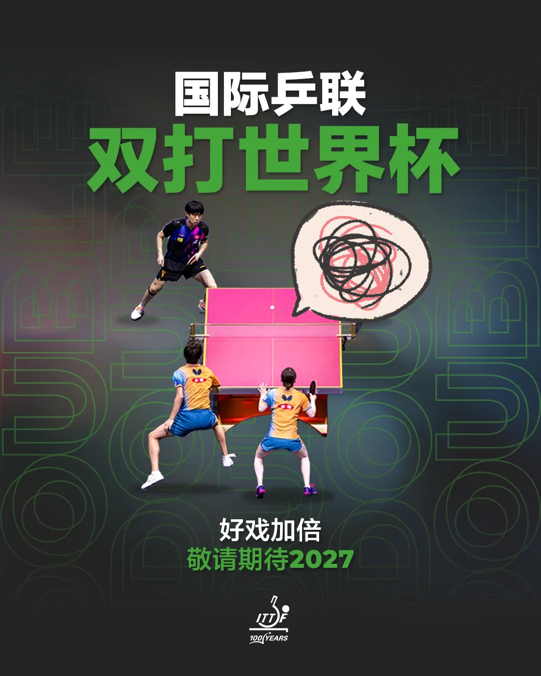 国际乒联双打世界杯2027年正式举办,设置:男双、女双、混双三个项目。