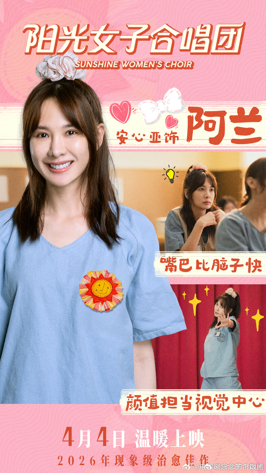 电影阳光女子合唱团定档电影《阳光女子合唱团》4月4日上映!台湾影史华语片票房第一,陈意涵带队组合唱团,彼此治愈,太戳人,坐等影院见 。