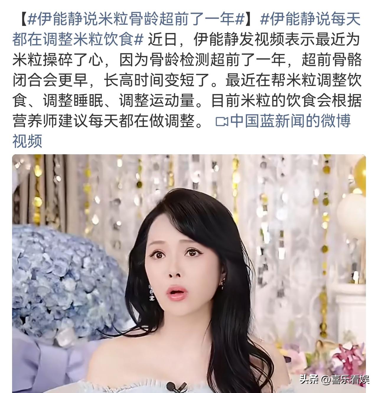 伊能静,为9岁女儿操碎了心 3月19日,伊能静又上了热搜,这次不是和秦昊甜蜜同框,而是她坦言最近为9岁女儿米粒操碎了心,语气里全是老母亲的焦虑。 视频里伊能静穿着浅蓝露肩裙,头发卷卷地垂在一边,表情特别认真的说:“米粒骨龄检测超前了一年,这就意味着骨骼闭合会更早,长高的时间直接变短了。” 这话一出来,瞬间戳中了好多家长的神经,毕竟谁都怕孩子长不高,这种“怕输在起跑线”的焦虑,太有共鸣了。 伊能静表示,现在她每天都在给米粒调整生活节奏:饮食要按营养师的建议精细搭配,睡眠和运动量也得严格把控,连自己都调侃“为了娃的身高,老母亲真是拼了”。 有网友看完这段视频,直接给伊能静留言:希望她把育儿细节分享出来,也给很多家长提了醒! 确实,这种不藏着掖着的真实分享,比那些空泛的育儿鸡汤有用多了,至少让大家知道“骨龄超前”不是小事,得早重视、早干预。 3月4号的时候,伊能静就有晒出家人为她庆祝58岁的生日合影,照片里能够看到,9岁的米粒已经高过妈妈的肩膀了。 据了解,伊能静身高有161cm,秦昊则181cm的身高,只能说,米粒的个子,妥妥的遗传了爸爸秦昊。 即便米粒后面的长高的时间变短,相信这小姑娘也不会矮到哪里去的,毕竟爸妈的身高都很优越。