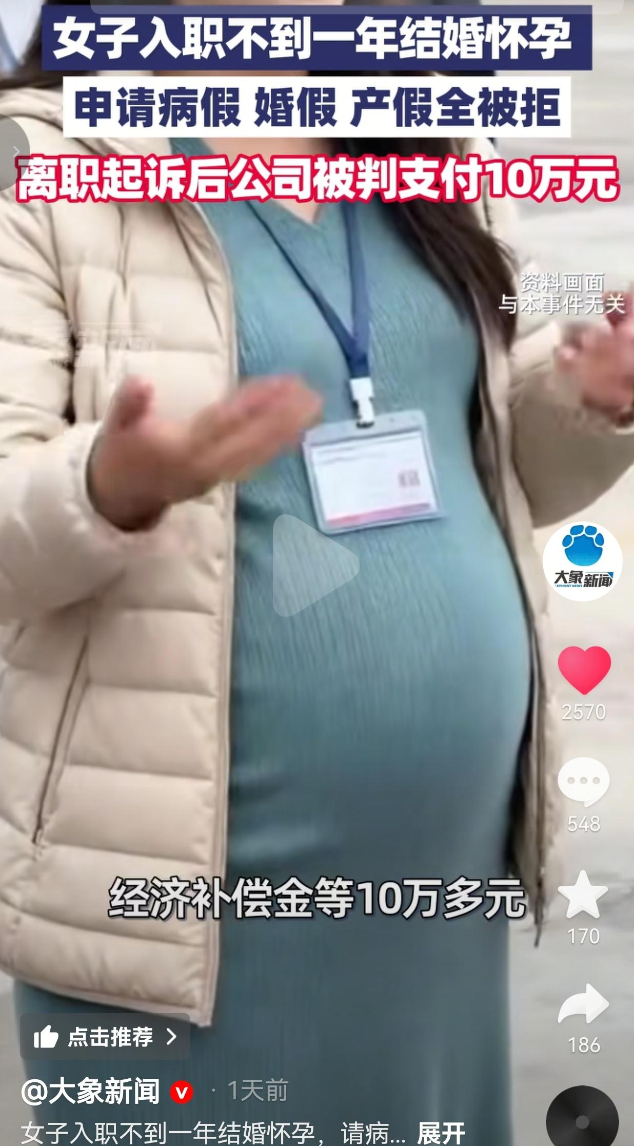 入职不到一年就怀孕?公司把病假婚假产假全拒了,上诉还想赖账,最后赔了10.1万!只能说干得漂亮! 有个姑娘,入职不到一年就结婚怀了孕,本来是人生大喜事,结果成了公司眼里的“麻烦”。 后来她查出先兆流产,医生让卧床休息,她只好拿着诊断书去请病假——结果,公司直接拒了。 接着她要请婚假,准备办婚礼,公司还是拒。再后来肚子大了要请产假,公司依旧拒! 连最基本的生育保障都不给,这公司是想把人往绝路上逼啊! 姑娘没办法,只能在申请的假期里安心养胎、生孩子,没去上班。结果公司倒打一耙,说她“旷工”。 她实在忍无可忍,在产假结束前一天,给公司发了被迫离职通知书,直接把公司告上法庭,要求支付病假、婚假、产假工资,还有违法解除劳动合同的赔偿。 一审法院判了:公司赔她相关工资和经济补偿金共计10.1万元! 涉事公司不死心,居然还提起了上诉,想赖掉这笔钱,结果二审法院直接维持原判!看到这结果,我只想说:大快人心!活该! 换作是你,怀个孕本来就辛苦,还得跟公司斗智斗勇。先兆流产的时候,躺在病床上担心孩子保不住,公司连个病假都不给批; 想办个热热闹闹的婚礼,公司连婚假都要卡;临产前要安心待产,公司连产假都要拒…… 这哪是上班?这是卖身给公司当牛做马,连当妈妈的权利都要被剥夺! 凭什么女性结婚生子,就要被当成“没有价值的员工”?凭什么公司可以肆无忌惮地践踏法律和人权? 网友看到后评论说:“这公司是没见过劳动法吧?以为怀孕的姑娘好欺负?10.1万都少了,就该重罚!居然还敢上诉,脸都不要了!” 也有的网友说:“我之前怀孕也被公司穿小鞋,太懂这种无助了!还好姑娘硬气,告赢了还扛住了公司上诉!给所有职场妈妈提气!” 也有的网友说:“合着公司招女的,就是为了让她们一辈子不结婚不生孩子,当永动机?这算盘打得我在千里之外都听见了! 还有的网友说:“10.1万是应得的!这不仅是钱,是给所有职场女性撑腰:我们的生育权,谁也不能剥夺!公司上诉也没用,法律站在正义这边!”  我就想说句掏心窝子的话,有些公司,真的是把“剥削”两个字刻进了DNA里。 招人的时候说得天花乱坠,一听说女员工要结婚怀孕,立刻变脸,把人当成“负担”“累赘”,连最基本的人道关怀都没有。 输了官司还不服,非要上诉折腾人,可见这公司的傲慢和冷漠已经到了什么地步! 他们忘了,自己也是妈生的,自己也会有家人、有孩子;他们忘了,劳动法不是摆设,不是用来给公司擦屁股的,是用来保护每一个劳动者的! 职场不是丛林,不是弱肉强食的地方,更不是可以随意践踏女性生育权的地方! 你今天欺负怀孕的女员工,明天就可能轮到你自己,轮到你的家人,轮到每一个普通人!  最后我想说 别让职场女性,在结婚生子的时候,还要先跟公司“打一仗”,甚至还要扛住公司的上诉纠缠。别让“怀孕”变成职场原罪,别让“母亲”变成被歧视的标签。公司可以逐利,但不能没有底线;可以讲效率,但不能没有人性。 你可以不祝福一个母亲,但你不能剥夺她做母亲的权利;你可以不喜欢劳动法,但你必须遵守它——哪怕上诉到天边,正义也不会缺席!   对此,你怎么看?