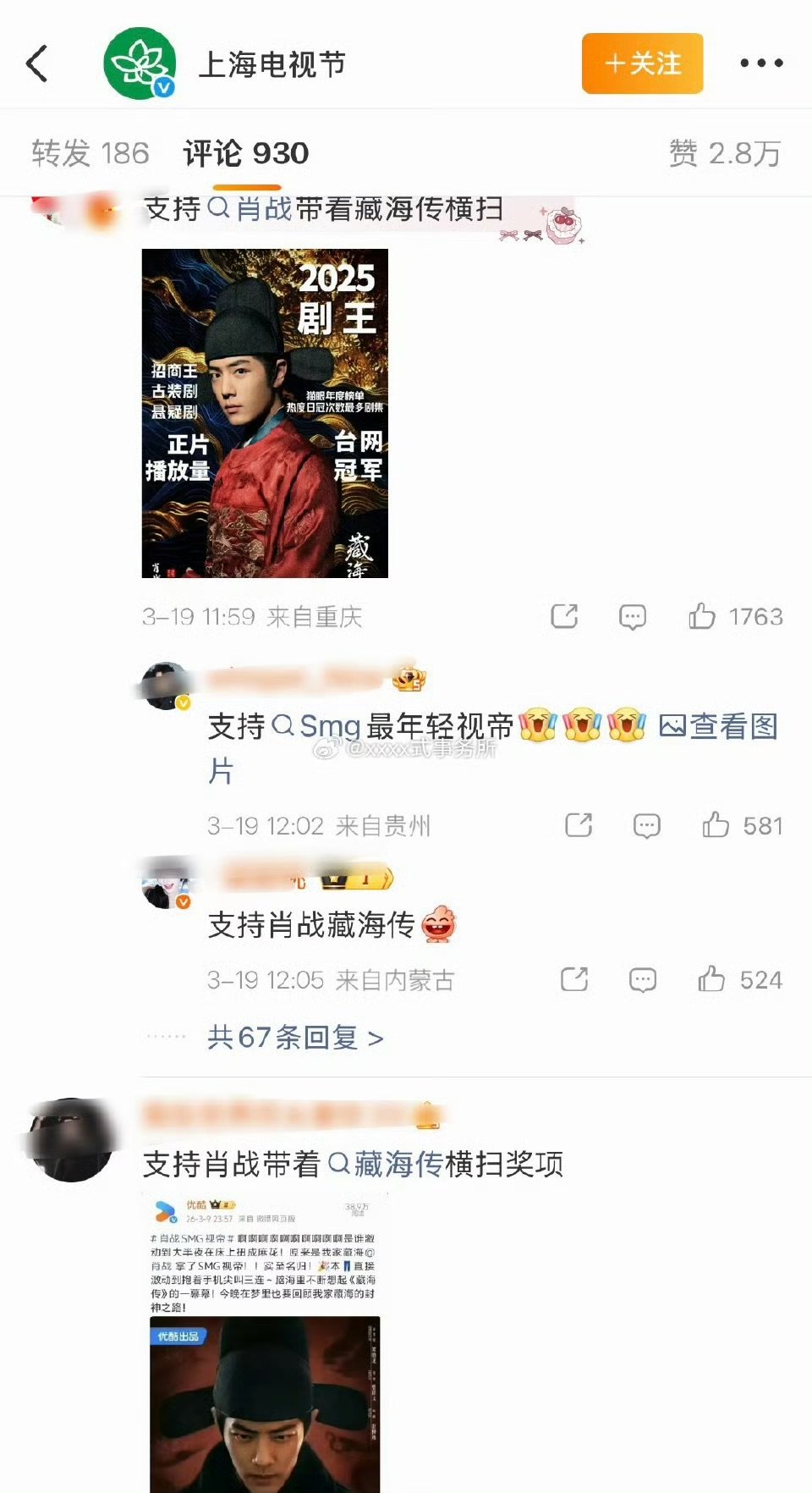 白玉兰官博提名白玉兰官博提名 都在支持肖战藏海传和迪丽热巴利剑玫瑰