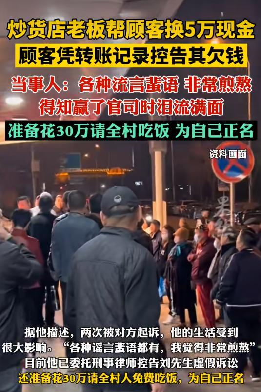 湖南沅江,一位年轻店老板遇到老客户求助,想要换50000元现金,老板看对方着急,就帮了忙,万万没想到,对方换完钱后,却拿着转账记录告他欠钱,虽然官司打赢了,但老板却受到很大影响,为了消除舆论,他准备花30万请全村吃饭自证清白。网友:必须反诉! 事情其实特别简单。曹天乐在镇上开炒货店,有个老客户刘哥来找他,说急着用现金,想用微信转五万块,换他手里的现钱。小曹没多想,大家都是熟人,转账记录明明白白,他就把店里的备用金拿出来给了对方。过了阵子,刘哥又来借了五千,也给了 按说这事就过去了。结果一个多月后,小曹突然收到法院传票,刘哥拿着那五万的转账记录,告他借钱不还。小曹整个人都懵了:那不是换现金吗?怎么成借钱了? 更麻烦的是,店里的监控只能保存一个月,早就覆盖了。没证据,他百口莫辩。镇子不大,消息传得飞快 有人说他是老赖,有人说他年纪轻轻就不学好,连家里人出门都被人戳脊梁骨。炒货店生意一落千丈,以前熟客绕道走,最后店也关了,几万块的货全倒掉 官司打了一年多,一审二审都判小曹胜诉。法院说得很清楚:俩人认识没几个月,平时没什么往来,哪有人啥凭证没有就借五万块出去?不合常理 他想过很多办法证明自己。一审赢了,他花两万多请腰鼓队游街,拉横幅庆祝胜诉。二审赢了,他又掏四万多请花鼓戏班子唱戏,请乡亲们来看。可没用,流言这东西,泼出去容易收回来难。有人甚至说:你没骗钱,人家为啥老告你?法院为啥受理? 这话能把人噎死。法律还了公道,却还不了名声。直到今年三月,刘哥又换了个名目告他,最后自己撤诉了。小曹接到通知时,在朋友家泪流满面。他说,这一年多太煎熬了 现在他憋着一口气,请了律师要刑事控告对方虚假诉讼。还跟家里商量,等刑事立案了,花三十万请全村人吃饭。他要上台把事说清楚,让大伙儿亲眼看看,这人到底是不是骗子 这事说到底,不是五万块的事。是好人被冤枉了,得花六倍的钱才能把脸面赎回来。更让人堵心的是,就算花了这三十万,能真正洗清多少,谁也说不好 小曹才十九岁,刚出社会就上了这么一课。他给大伙儿提了个醒:但凡涉及钱,不管多熟,转账一定备注清楚,换现金就写现金,借钱就写借。别嫌麻烦,真出了事,这几个字比你跟法官说一百句都管用