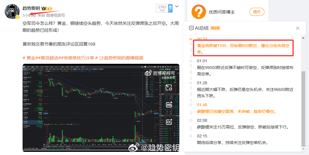 早上视频讲解的时候给大家说黄金反弹到1080-1090分批布局空单,看是不是下来了,这时候不要想着做多,只能是反弹空空空。