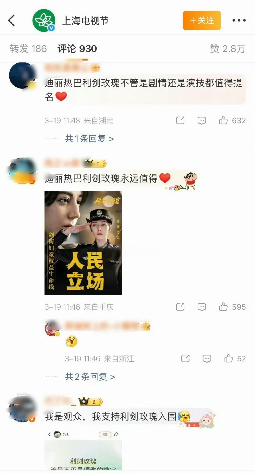 白玉兰官博评论区前排,很多人提名肖战的《藏海传》和迪丽热巴的《利剑玫瑰》