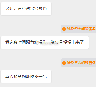 另外很多朋友问有没有小zi金名额,我在这里只能说一声抱歉了,目前还没有小zi金名额。你们也知道,每天实盘指导需要耗费我大量的精力人力,时间成本,还有团队的开支成本。大家可以想一想,假如实盘没有门槛,让所有朋友都进来,那我们实盘指导的质量还能高吗?相信你想要的,也不是低到没有风控保证的门槛。而是老师真材实料的实力与责任心。大家来到市场都是希望找到一位好老师,哪怕门槛高一点。因为好老师和好产品同样让人爱不释手。门槛高,有门槛高的道理,因为实力、人品、责任心都有保障。