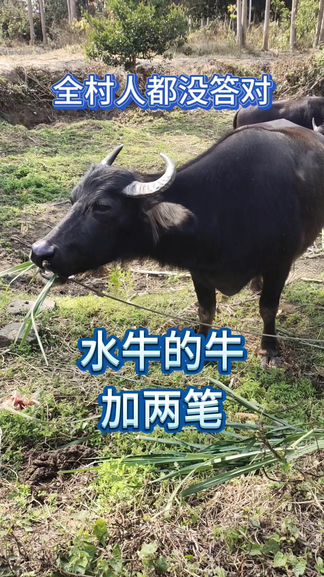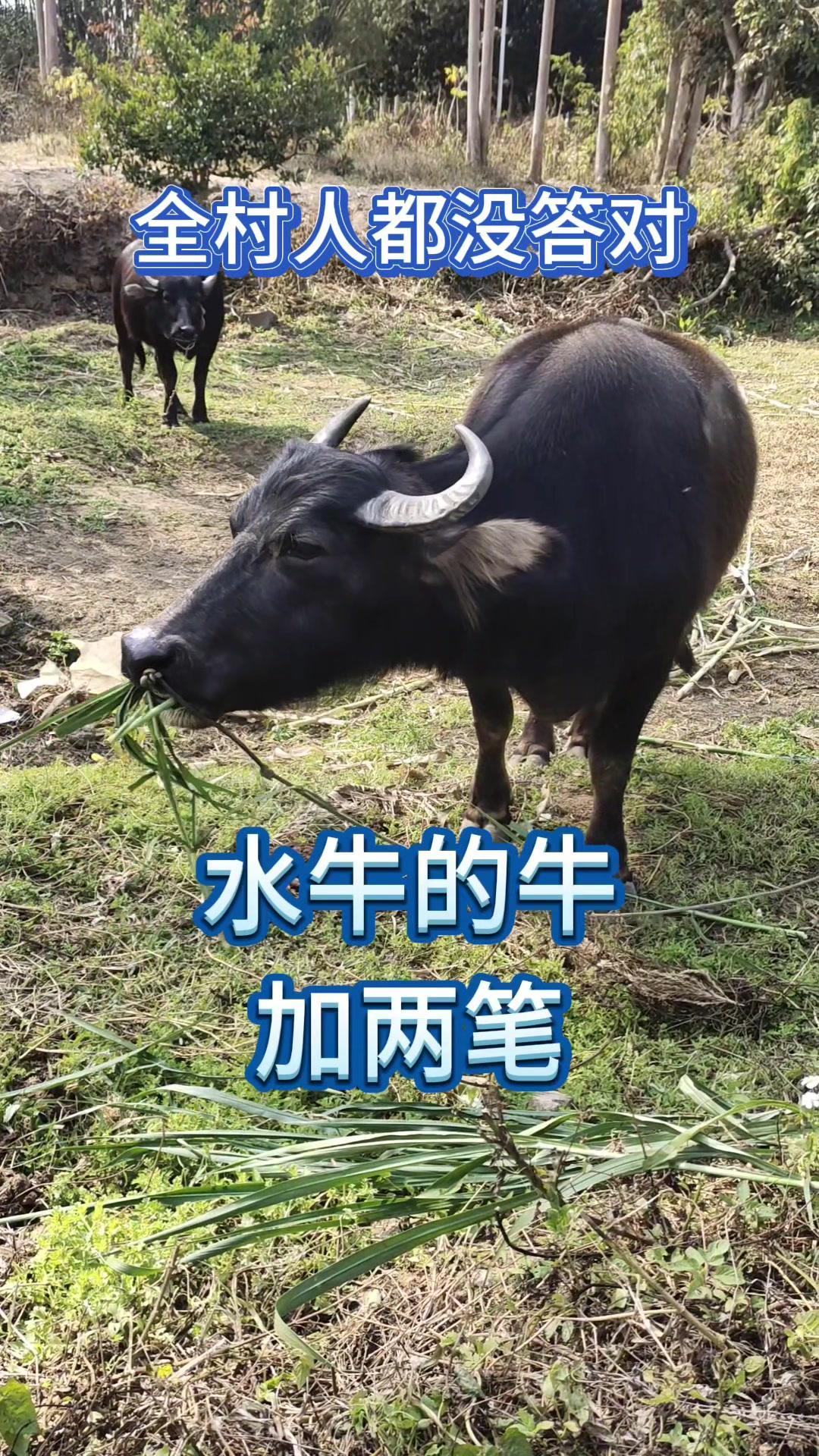 题目:牛加两笔是什么字?正文:🐮全村人都没答对的谜儿,水牛的牛加两笔到底是啥?