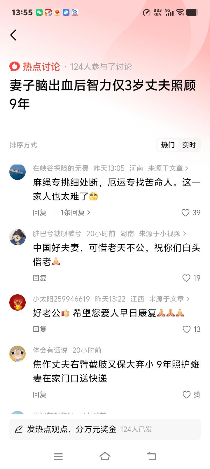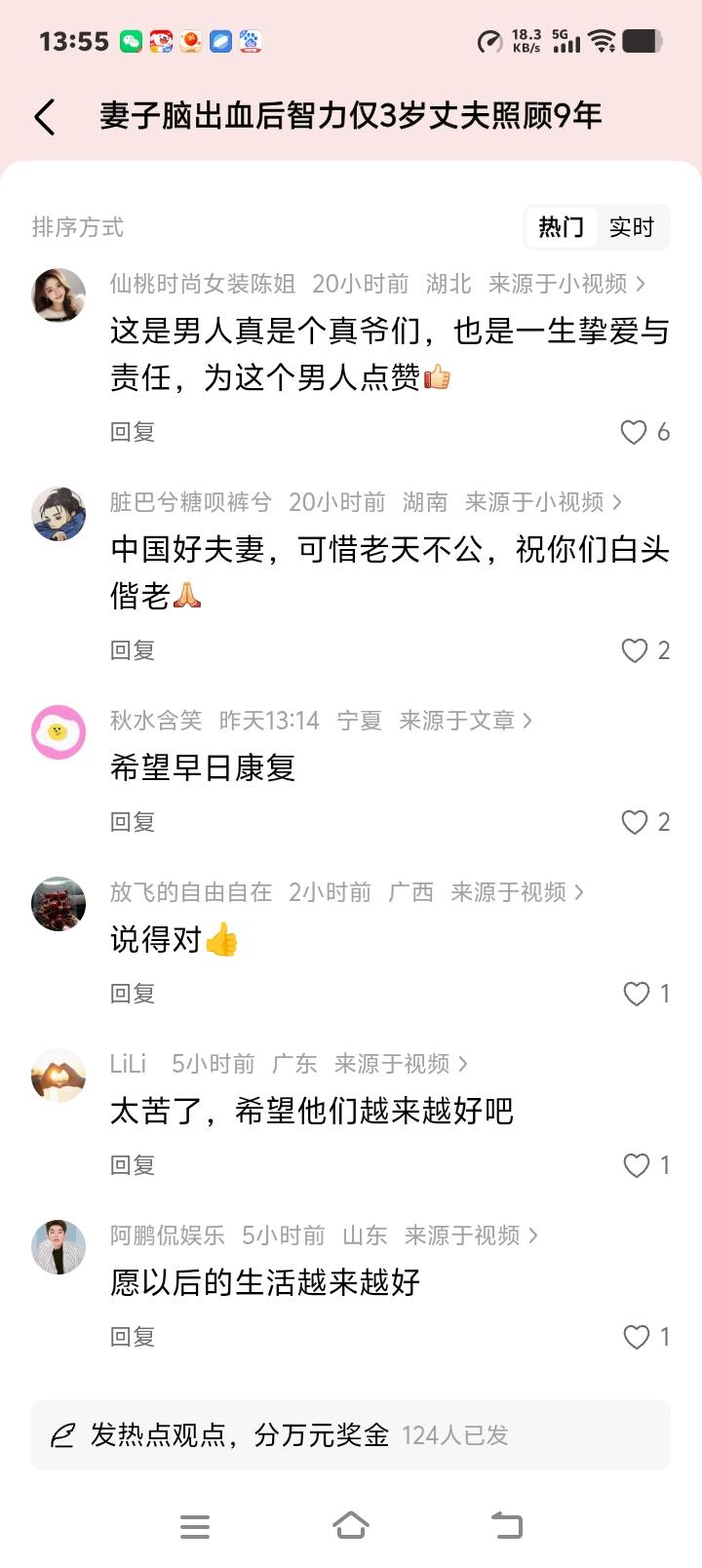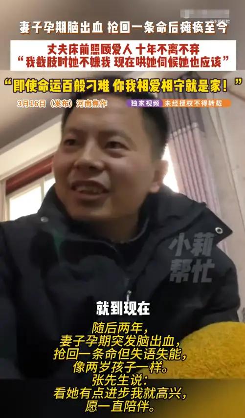 河南焦作独臂丈夫9年如一日守护“3岁”病妻:她在我断臂时未离弃,如今我用一生偿还这份情债 当婚礼的誓言从“无论贫穷富贵”变成每日喂饭擦身的琐碎,有多少爱情能经受住命运的残酷试炼?在河南焦作西万镇官庄屯村,一条不起眼的乡间小路上,每天都能看见独臂的张凯用左手分拣快递包裹,每隔十分钟就回头望望屋里坐着的妻子芳芳。这个动作,他重复了整整九年,三千多个日夜从未间断。 九年前,新婚燕尔的芳芳在怀孕两月时突发脑出血,抢救后智力退化至三岁孩童水平。而就在一年前,张凯因工伤失去右臂时,芳芳曾握着他的手说:“这辈子我跟定你了。”如今角色互换,张凯用仅存的左臂撑起了整个天空。医生曾委婉暗示未来漫长,他只答:“她还在呼吸,这个家就还是完整的。” 每天清晨五点,当第一缕光照进简陋的平房,张凯的一天开始了。单手为妻子翻身、按摩、换洗衣物,这些常人简单的动作他要耗时数倍。灶台上炖着糊状的营养餐,他得先试温度,一勺勺吹凉喂到妻子嘴边。有时芳芳会突然打翻碗勺,他只是默默收拾,像对待学吃饭的孩子般耐心。邻居说,从未听他抱怨过半句。 为维持生计,他在院门口搭起快递驿站。分拣包裹时,他总侧着身子,确保余光能看见屋内的动静。有次妻子试图爬下床,他扔下快递冲进去,残缺的右臂下意识想去搀扶,却只能用胸膛抵住妻子下滑的身体。那一刻,这个三十多岁的汉子眼眶通红,不是为自己,是怕她再受一点伤。 苦难似乎格外“眷顾”这个家庭。去年,张凯的父亲确诊癌症,他肩上的担子又添重量。凌晨照顾父亲服药,白天经营驿站,深夜给妻子做康复训练,他的时间被切割成碎片。有公益组织想提供帮助,他婉拒了大部分:“我能行,把资源给更需要的吧。”唯一接受的是康复器材,因为那能让妻子舒服些。 令人动容的是,芳芳并非毫无感知。当张凯疲惫时,她会用仅能活动的左手轻轻碰他手背;听到丈夫声音,眼神会追随移动。医生说这是奇迹,张凯却觉得这是妻子在用她的方式“陪伴”他。九年,他从青年步入中年,白发早生,左手结满厚茧,却让妻子身上从未长过一块褥疮。 网友拍到这样一幕:夕阳下,张凯推着轮椅上的芳芳在田埂散步,他弯腰指着油菜花在她耳边说话,她忽然咧开嘴笑了。那一刻,苦难仿佛被镀上金光。有年轻夫妻留言:“我们吵架冷战三个月,看到他们,突然觉得鸡毛蒜皮都不算事。” 这个故事最刺痛人心的,是让我们看见爱情最原始的模样——它不是鲜花钻戒的浪漫,而是灾难来临时本能般的紧握;不是权衡利弊的选择,是“你护我一次,我守你一生”的轮回。在这个离婚率攀升的时代,张凯用九年独臂坚守,重新定义了“相濡以沫”的重量。 如今,张凯入选“中国好人榜”,他说这荣誉属于妻子:“没有她当年的不放弃,就没有今天的我。”快递驿站的墙上贴着一张褪色的婚纱照,照片里两人笑靥如花,下方有行歪斜的字迹:“家”在,一切都在。 不离不弃 人间真情 患难夫妻 (来源:综合沈阳网、小莉帮忙等媒体报道)