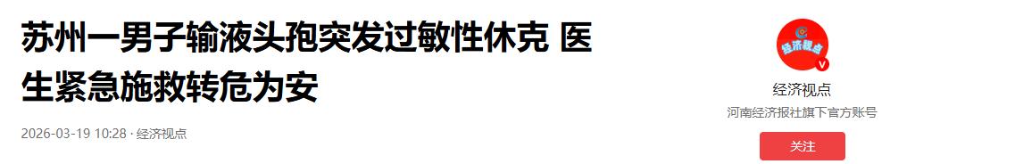 输液快结束时,他突然两眼一黑,重重砸向地面。这是发生在苏州一家诊所的一幕。用了七年的药,怎么突然成了“催命符”?这位老病号到底经历了什么? 面对突如其来的休克,死神已经悄然逼近。3月17日,江苏苏州。一名男子因为化脓性扁桃体炎伴随高热,走进了他熟悉的那家诊所。 接诊的王医生对他太了解了。七年的医患交情,让王医生对他的身体状况了如指掌。没有基础病,没有药物过敏史。连续六七年使用头孢类药物,从未出过问题。 按照常规,王医生为他开具了头孢类药物进行静脉输液。一切看起来都很平稳。输液初期,男子没有任何不适。 就在输液即将结束时,危险毫无征兆地降临。王医生在巡视中敏锐地察觉到了异常。男子的眼睑和嘴唇出现了严重的水肿。同时,他还伴有轻微的皮肤瘙痒。 经验丰富的王医生立刻警觉起来。这是典型的药物过敏反应。他当机立断,准备给予抗过敏药物。然而,病情恶化的速度超出了所有人的预料。 还没等抗过敏药打进去,男子突然丧失了意识。他两眼发黑,直挺挺地倒在地上,陷入了深度休克。 面对命悬一线的患者,王医生展现出了极高的专业素养。他临危不乱,立刻停止了头孢输液。紧接着,他迅速对患者实施胸外按压。抢救工作全面展开。 关键时刻,一针“救命药”起到了决定性作用。王医生果断为患者肌肉注射了肾上腺素。这是应对过敏性休克的首选用药。它能快速收缩血管、升高血压,把人从鬼门关拉回来。 护士的配合同样默契。她没有拔掉输液针,而是迅速妥善保留了静脉通道。同时,她密切监测患者的生命体征,严格遵照医嘱给药。这是一场与死神的赛跑。 黄金五分钟,决定了生死。经过医护人员的全力抢救,奇迹发生了。男子的意识逐渐恢复,终于脱离了生命危险。随后,医生又给予了呼吸支持和留观用药。 人救回来了,但疑问却挥之不去。一个用了七年头孢都没事的人,为什么会突然严重过敏?王医生给出了答案:体质的动态变化,打破了长期的“药物耐受”。 这名男子近期频繁熬夜。长期的作息不规律,导致他免疫力严重低下,免疫系统陷入紊乱。在这个特定的生理窗口期,即使是长期耐受的药物,也成了致命的毒药。 这打破了无数人的认知误区。公众普遍以为,以前不过敏,就等于永远不过敏。这种静态的过敏史认知,极其危险。异常激活的免疫细胞,随时可能引发突发过敏。 这起事件敲响了医疗安全的警钟。防范输液风险,绝对不能只靠医生的单方面巡视。医疗安全,严重依赖“医患双向监测”。患者自身必须保持高度警觉。 在用药过程中,患者要时刻关注身体的体感变化。一旦出现微小的不适,比如轻微的瘙痒或水肿,必须立刻向医生反馈。只有这样,才能形成真正的安全闭环。 更重要的是,这揭示了一个生死攸关的底线原则。发生过敏反应时,“保留静脉通道”就是保留生机。患者或家属应立即呼救并关闭输液,但绝不能擅自拔针。 在休克状态下,人体的血管会迅速瘪掉。原有的静脉通道,是快速输入肾上腺素等抢救药物的唯一“救命通道”。盲目拔针会导致给药途径中断。这无异于自断生路。 这名男子是幸运的。他遇到了一位经验丰富、处置果断的好医生。但我们不能把生命安全仅仅寄托在运气上。打破认知误区,掌握急救常识,才是真正的护身符。 医学从来都不是绝对的科学,而是充满变数的探索。每一次用药,都是对身体机能的一次试探。保持敬畏,警钟长鸣。这不仅是医生的责任,更是每个人的生命必修课。