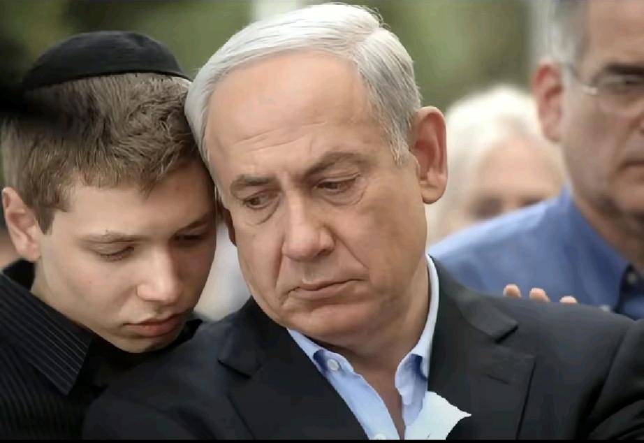 年迈的父亲在安慰着眼圈泛红的内塔尼亚胡; 内塔尼亚胡和儿子相互依偎着,看起来好伤