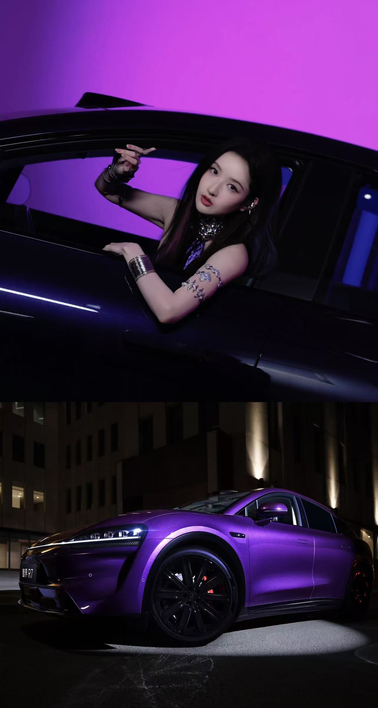 智界R7暗夜紫实车 老乡王玉雯,又晒出了智界R7暗夜紫实车,光影下随角异色尽显先锋格调,真就是香车配美人吧!