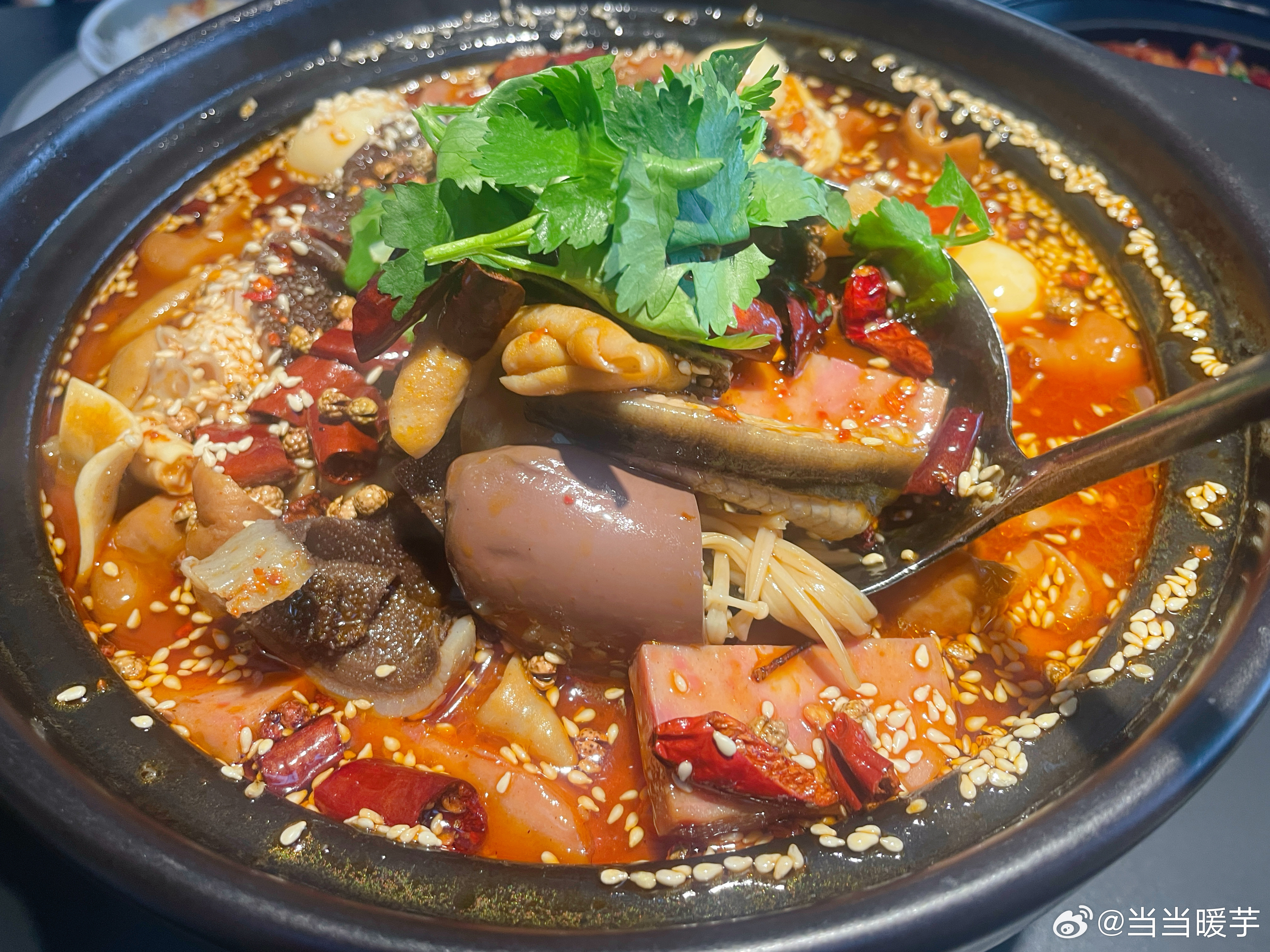 麻六记|一口入魂的川味盛宴🌶️吃完再加一杯好茶,你会觉得很快乐我的美食日记全世界都在一块喝好茶镇店招牌毛血旺,文火慢熬而成的醇厚红汤,麻辣鲜香,层次分明。夫妻肺片、辣子鸡,两道菜都麻得过瘾、辣得酣畅~ 青花椒鱼鲜滑入味,担担面劲道裹满酱汁,收尾冰粉解辣又清甜。明亮落地窗配正宗川味,味蕾直接被拿捏,好吃到停不下来!