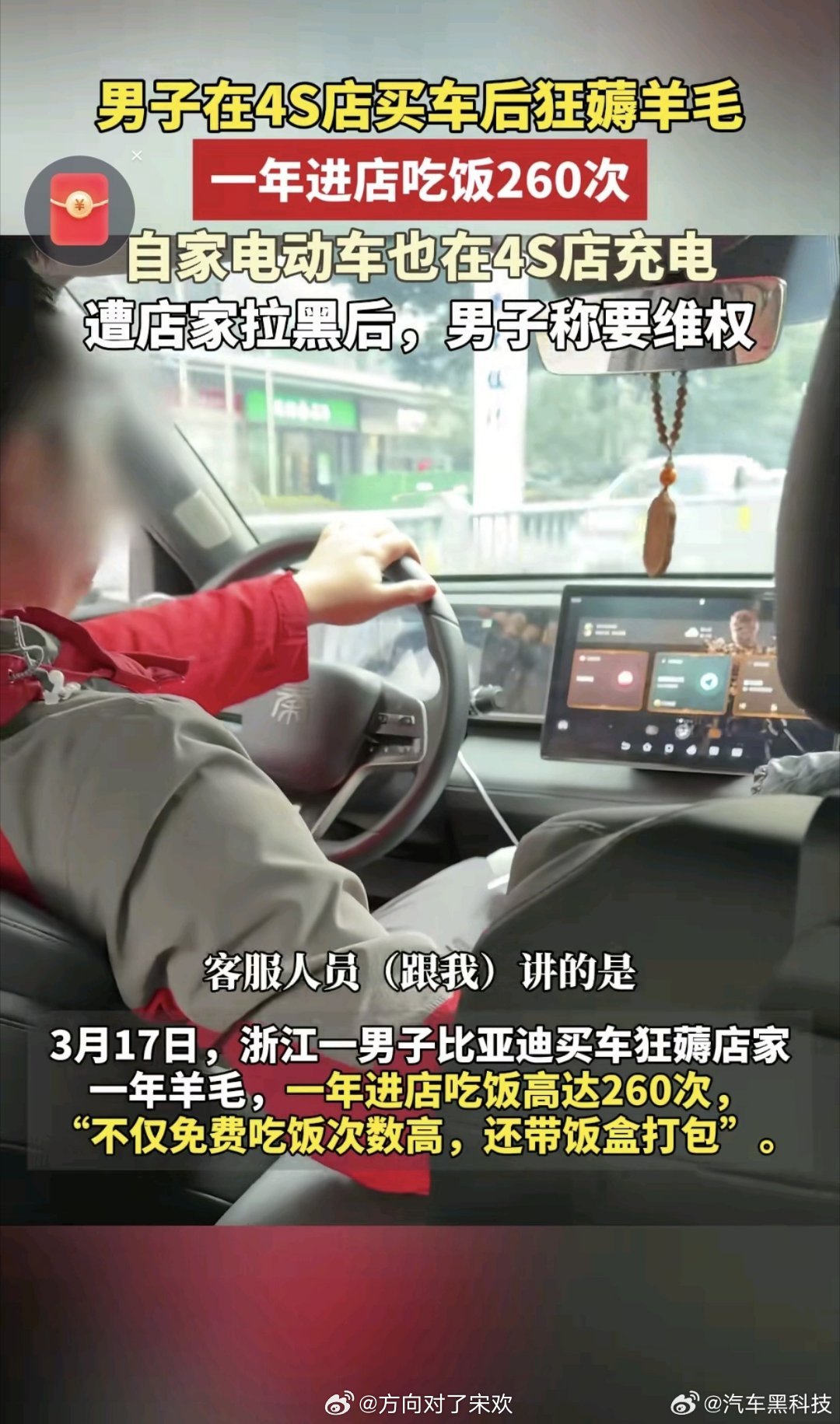 你会经常薅4s店羊毛吗近期“鸿蒙智行叫停免费餐饮、充电”与“比亚迪车主一年进店吃饭260次”事件引发热议。过度薅羊毛让4S店不堪重负,最终导致免费服务全面收缩。理性利用到店配套服务是智慧,但无底线薅羊毛只会让所有车主失去便利,得不偿失。 大v聊车
