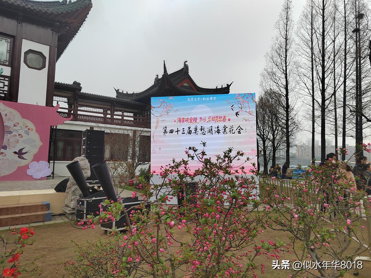 春赏海棠,到此莫愁—第43届莫愁湖海棠花会明日启幕 今日送别雨水,南京天气终于放晴,春和景明暖意融融,踏青赏花正当时。下午老伴在社区排练广场舞,我一个人坐公交车到莫愁湖公园逛了一圈。公园内的海棠花有的含苞待放,有的花开正旺,吸引众多游人打卡拍照。真可谓“百啭黄鹂看不见,海棠无数岀墙头”。 明天,第43届莫愁湖海棠花会将在莫愁湖公园启幕,公园内的标识牌、指示牌已到位,今天下午,抱月楼广场正在进行舞台布置,主持人正在现场排练。据悉,东方歌舞团著名歌唱家朱明瑛将受邀到活动现场演唱歌曲《莫愁啊莫愁》,现场还将上演三代《莫愁》同台联唱。当年朱明瑛一曲《莫愁啊莫愁》登上了1984年央视春晚舞台,让莫愁湖家喻户晓。