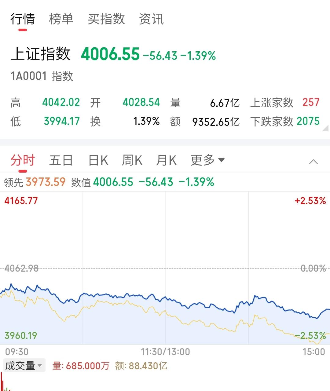 今日东风破,真的下跌到4000点以下了,主力净流出一千亿,之前顶多是流出百亿,这个时刻得记录一下,心慌慌,路茫茫! 前几天刚加仓完,还以为无论如何震荡都会在四千以上,大家给点意见吧[捂脸]下一步,何去何从! 我本将心向明月,奈何明月照沟渠!