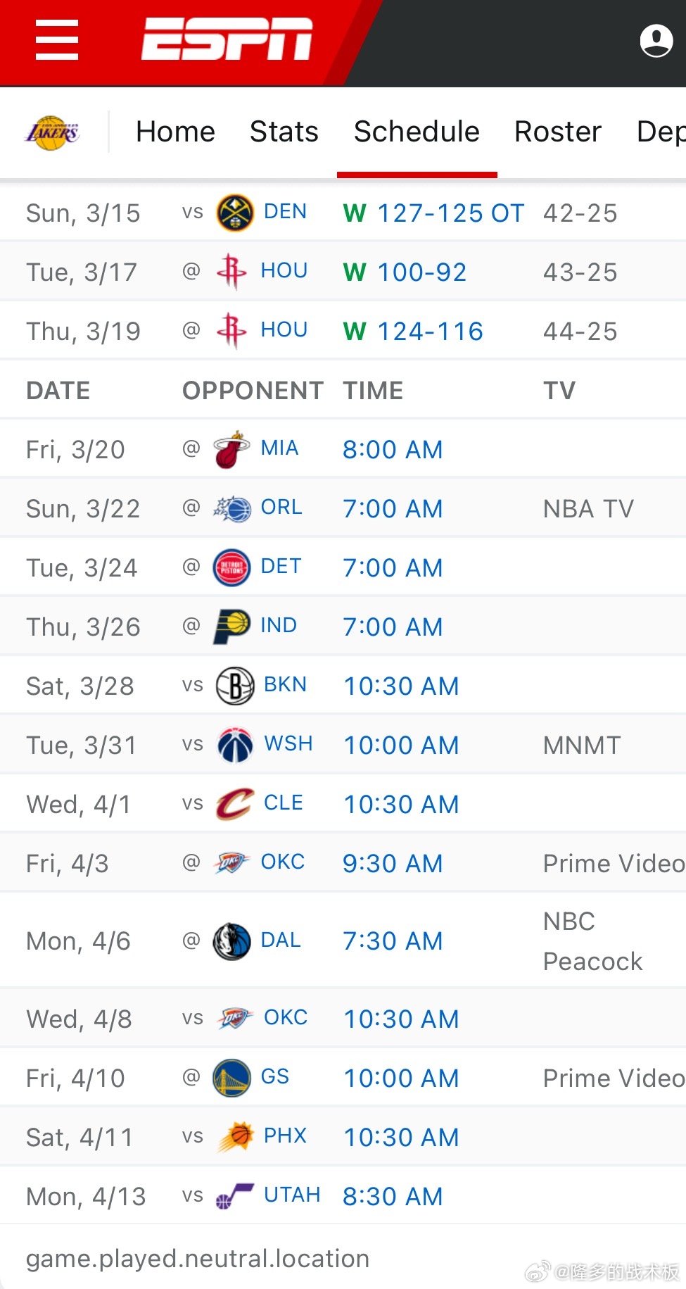 湖人还剩最后13场常规赛:主客场两战雷霆东部硬茬魔术、活塞、骑士背靠背和太阳打第