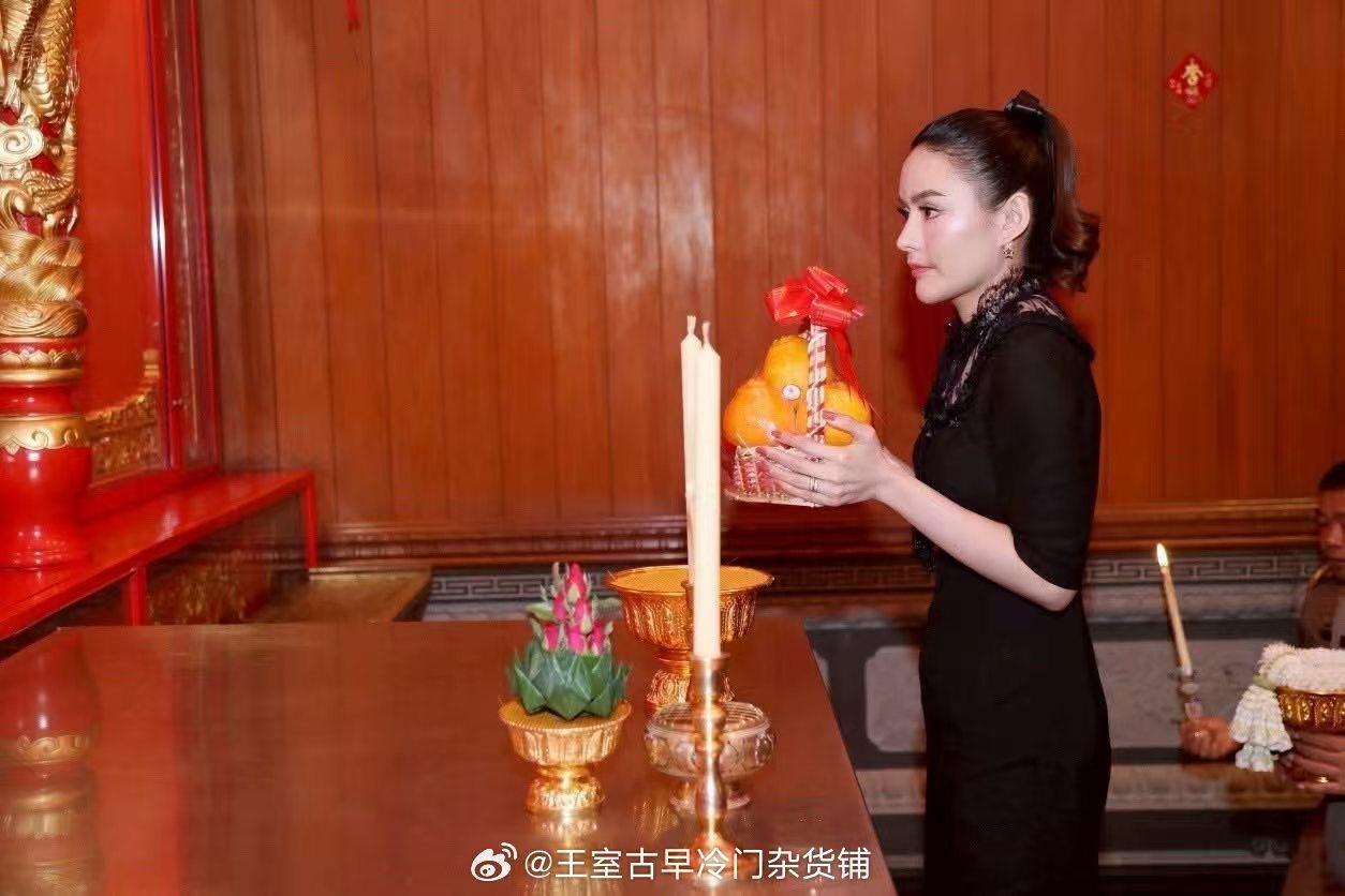 当苏提达王后陪着泰王在老挝访问时,作为新妃子的欧拉弄也惊艳亮相了。 3月17日,刚刚被泰王提拔为中将的欧拉弄现身曼谷龙莲寺,为接下来的工作和后宫生活祈福。 和苏提达王后的端庄雍容截然不同,欧拉弄一身黑色蕾丝裙,身姿曼妙。 不仅如此,高扎马尾,发尾打造成大卷发,还搭配了黑色蝴蝶结发饰,虽然已经33岁了,但是整体造型甜美又俏皮。 欧拉弄是知道如何展现自己的魅力的,苏提达王后端庄优雅,而她的甜美可人是完全不同的风格,也让人见识不一样的美。