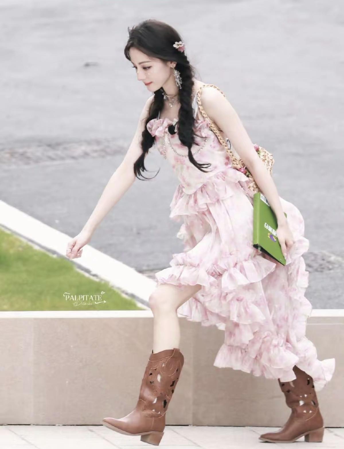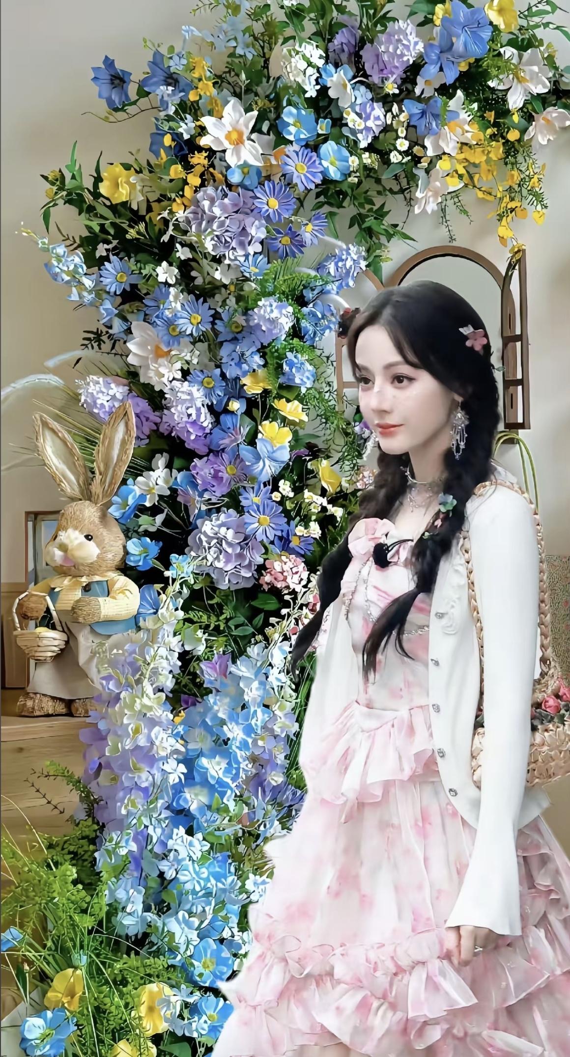 风里都是春天的味道,和迪丽热巴一起坠入粉色花海[玫瑰]双麻花辫配碎花裙,是会发光的花仙子本人没错了[赞]娱乐明星
