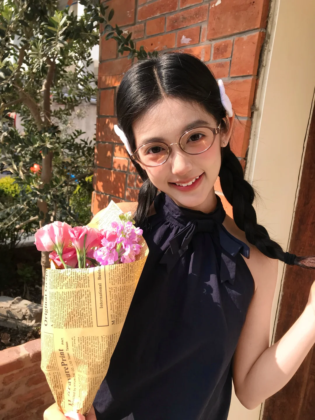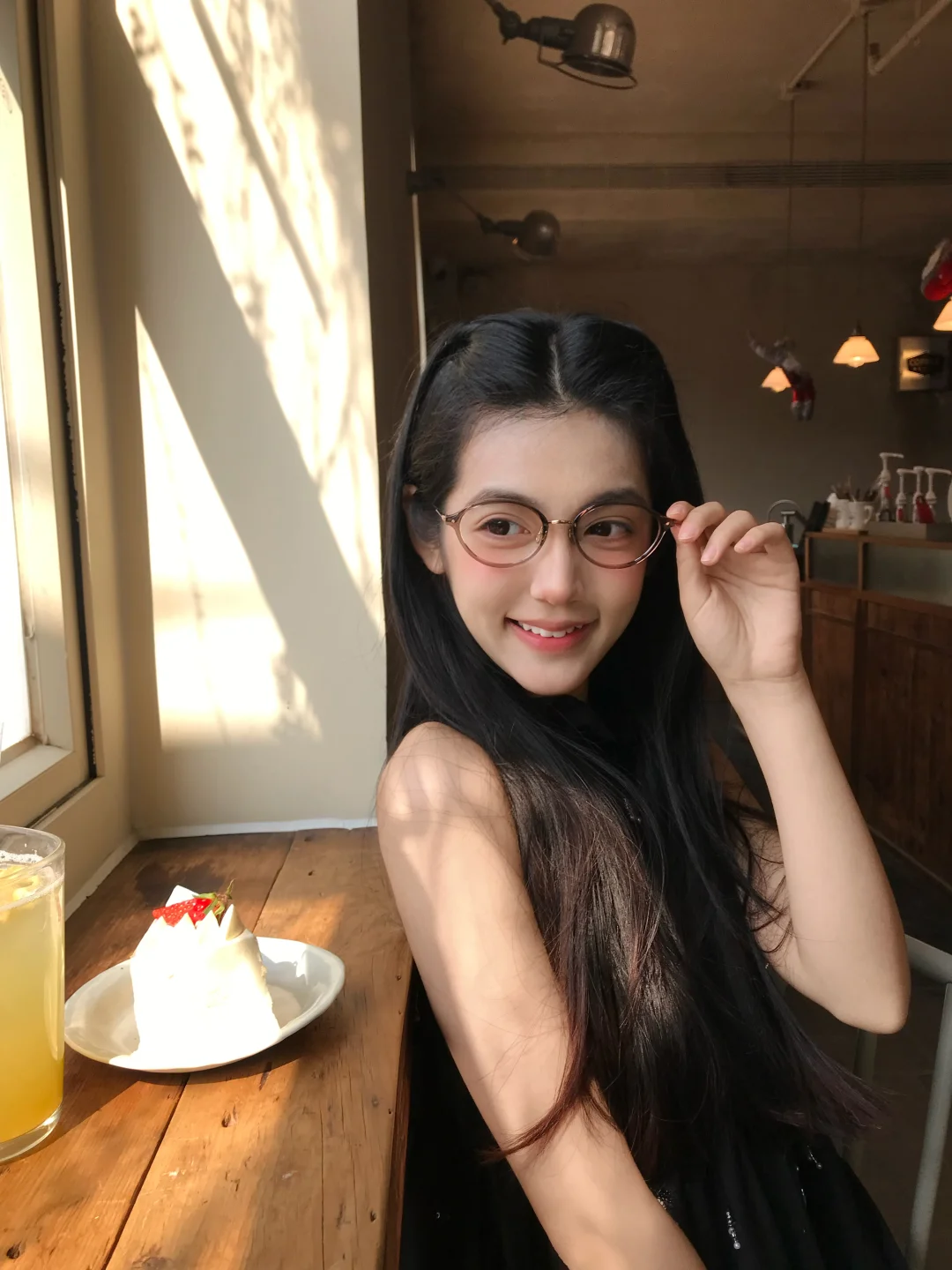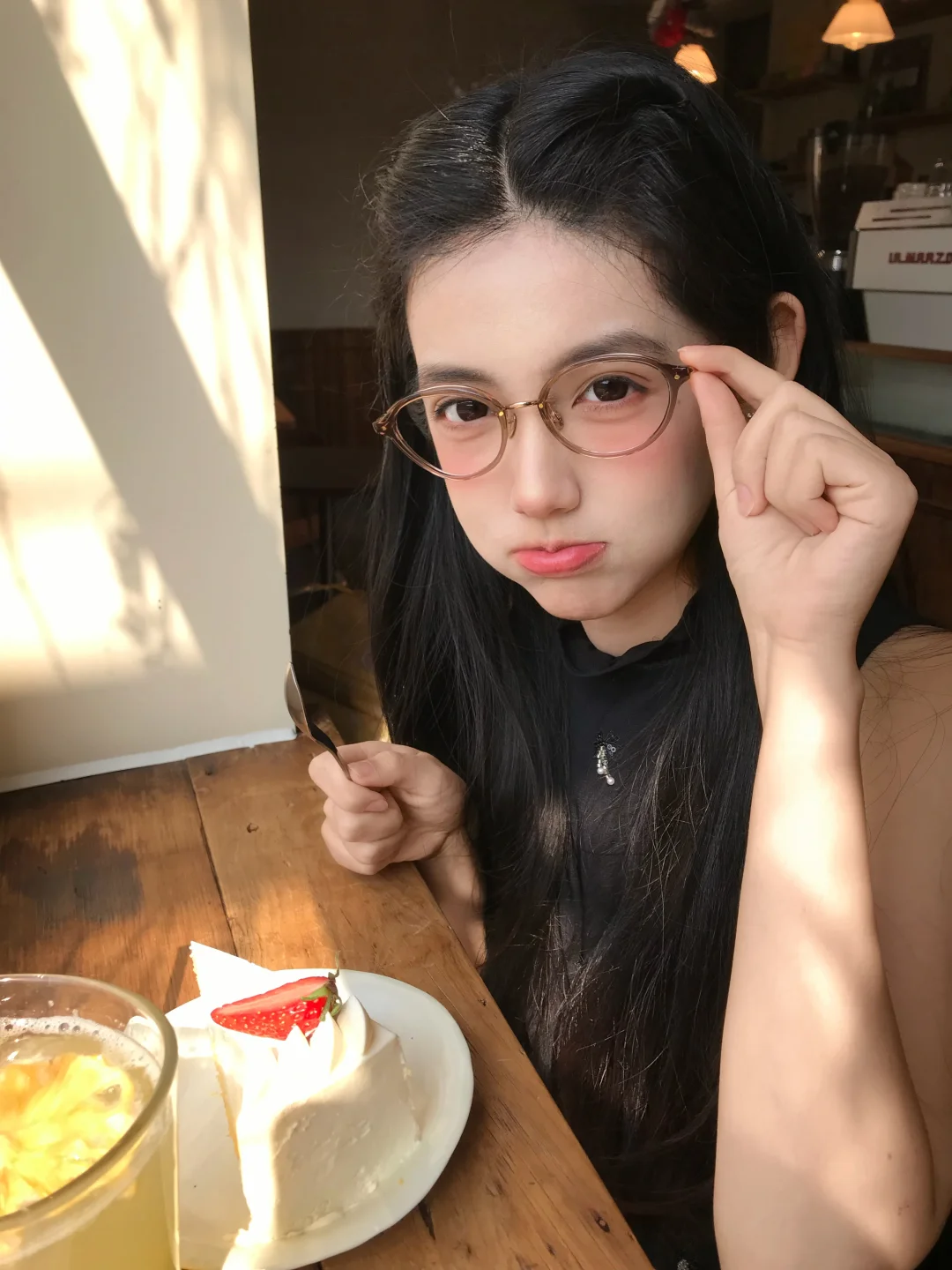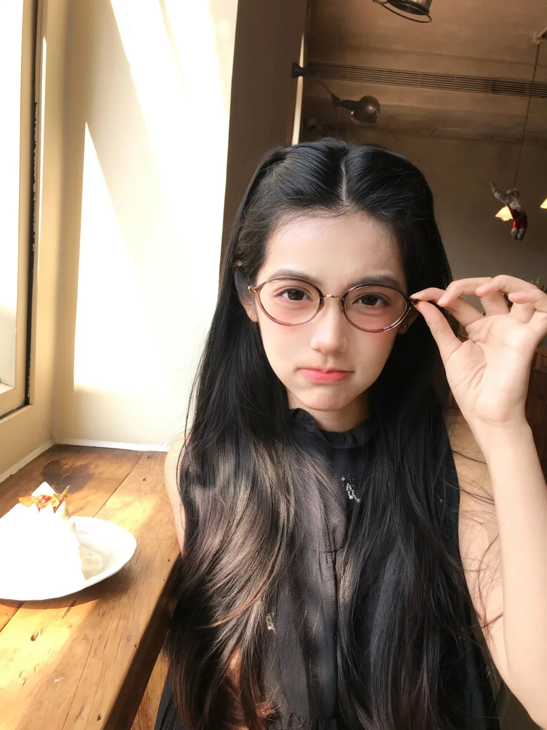 我平时就是上课、素颜出门居多,这时候我就会戴眼镜,