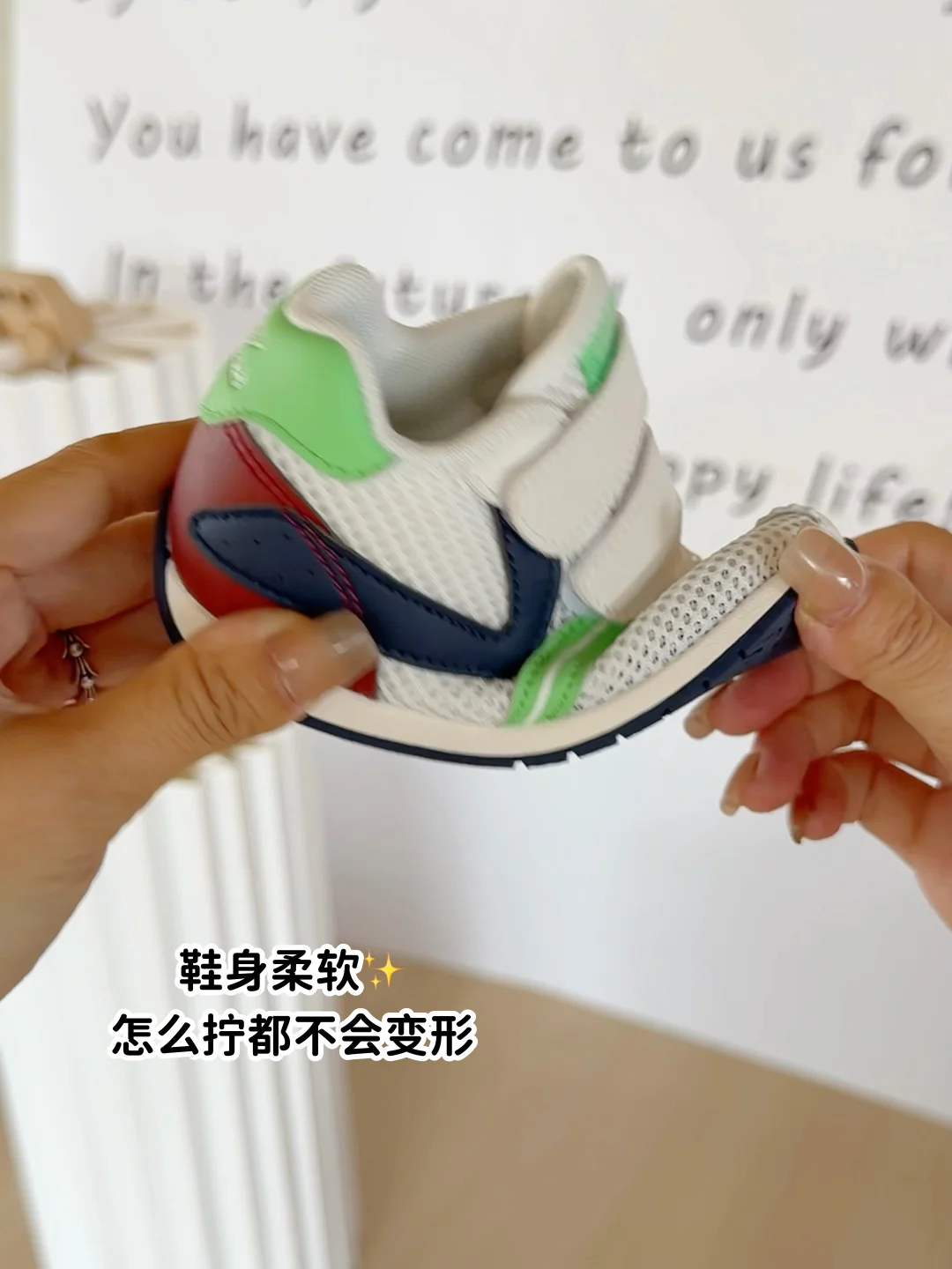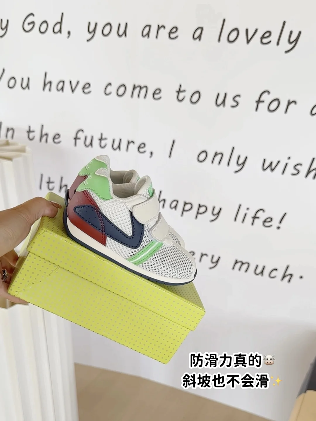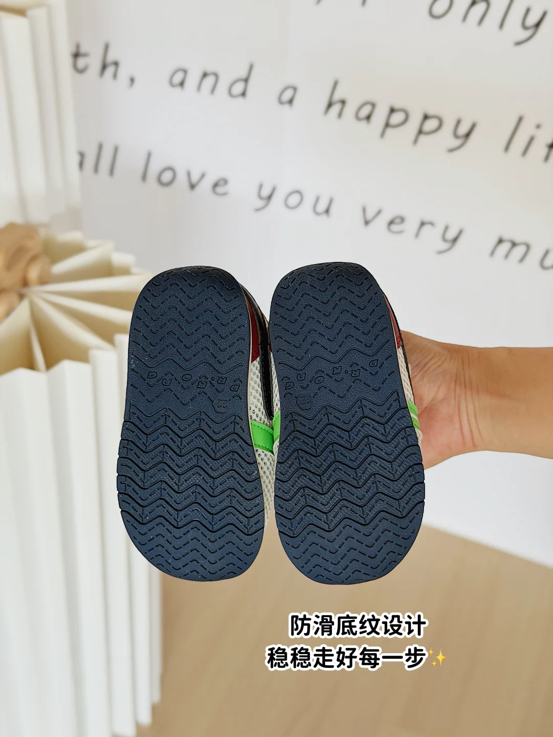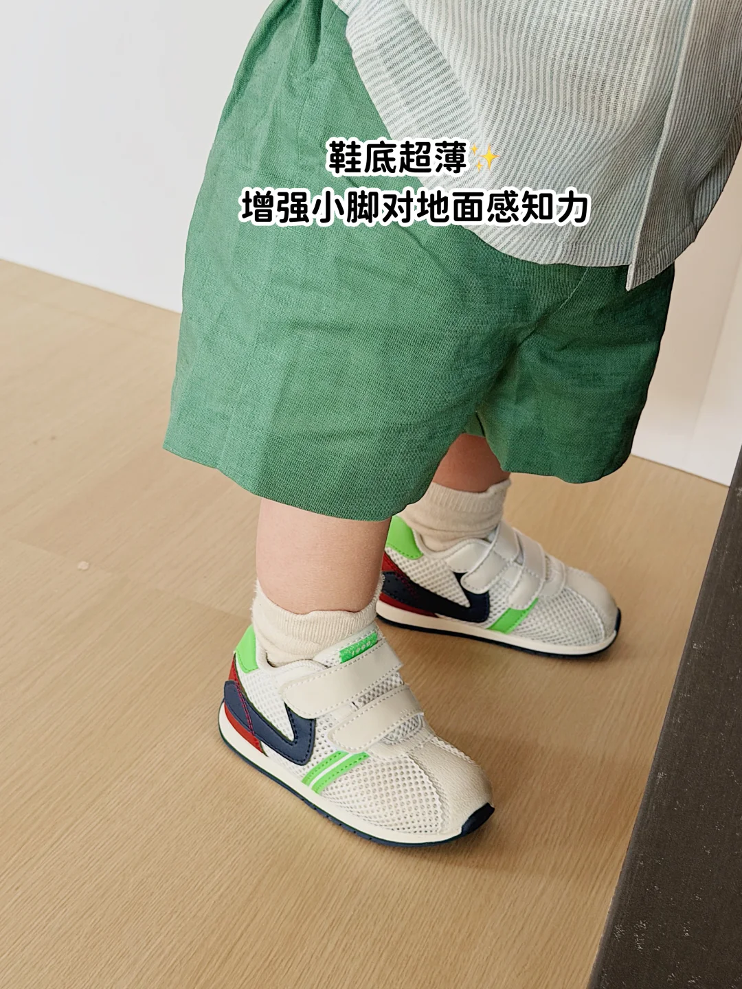 ✅ 白绿撞色的网面设计超清新,也很适合西双版纳的春天,透气不闷汗,宝宝穿上拍周岁照☺️镜头感直接拉满~家里七大姑八大姨看了都夸:这鞋选得真好看!
