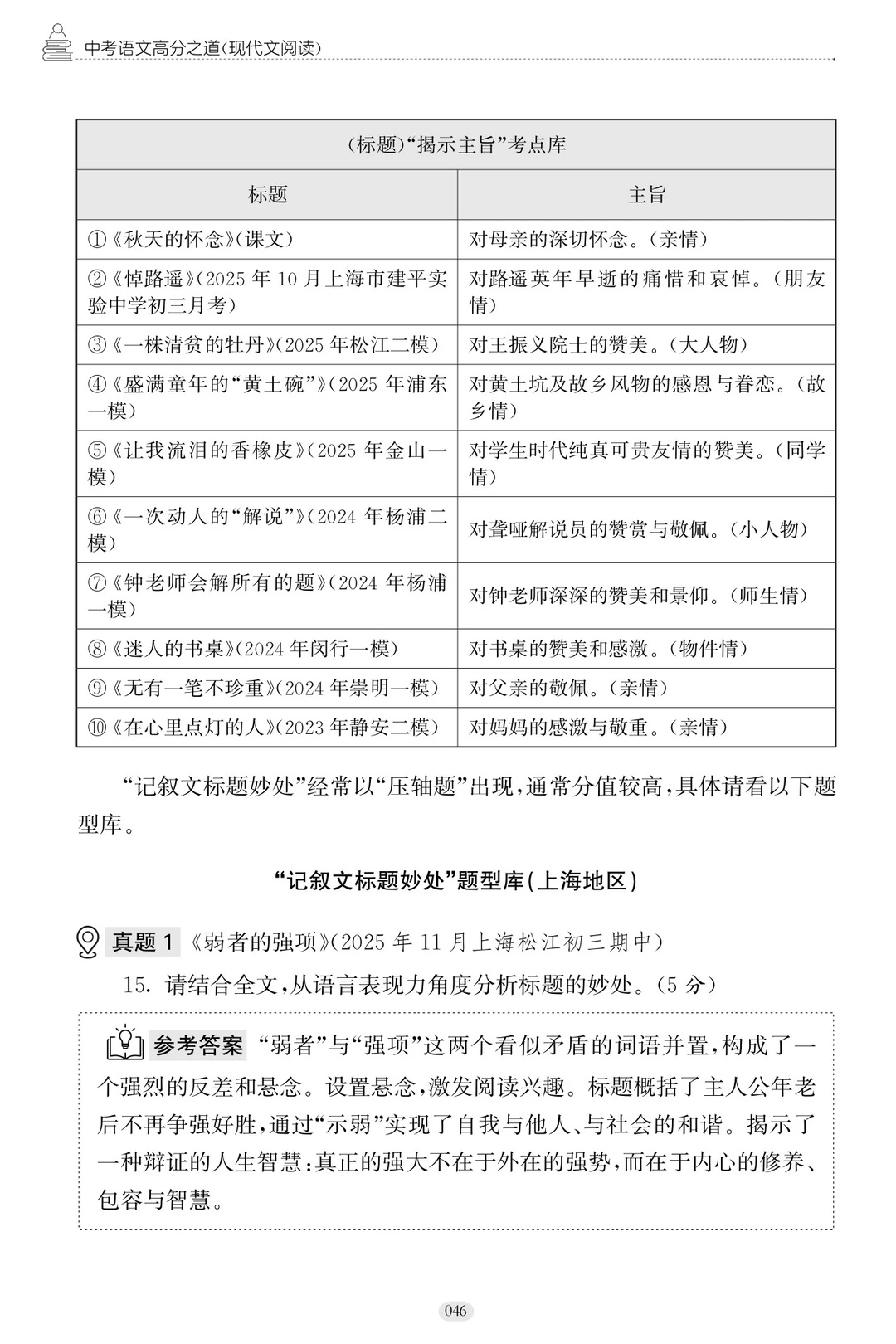 现代文考点➕题型库1:标题妙处(20000字)