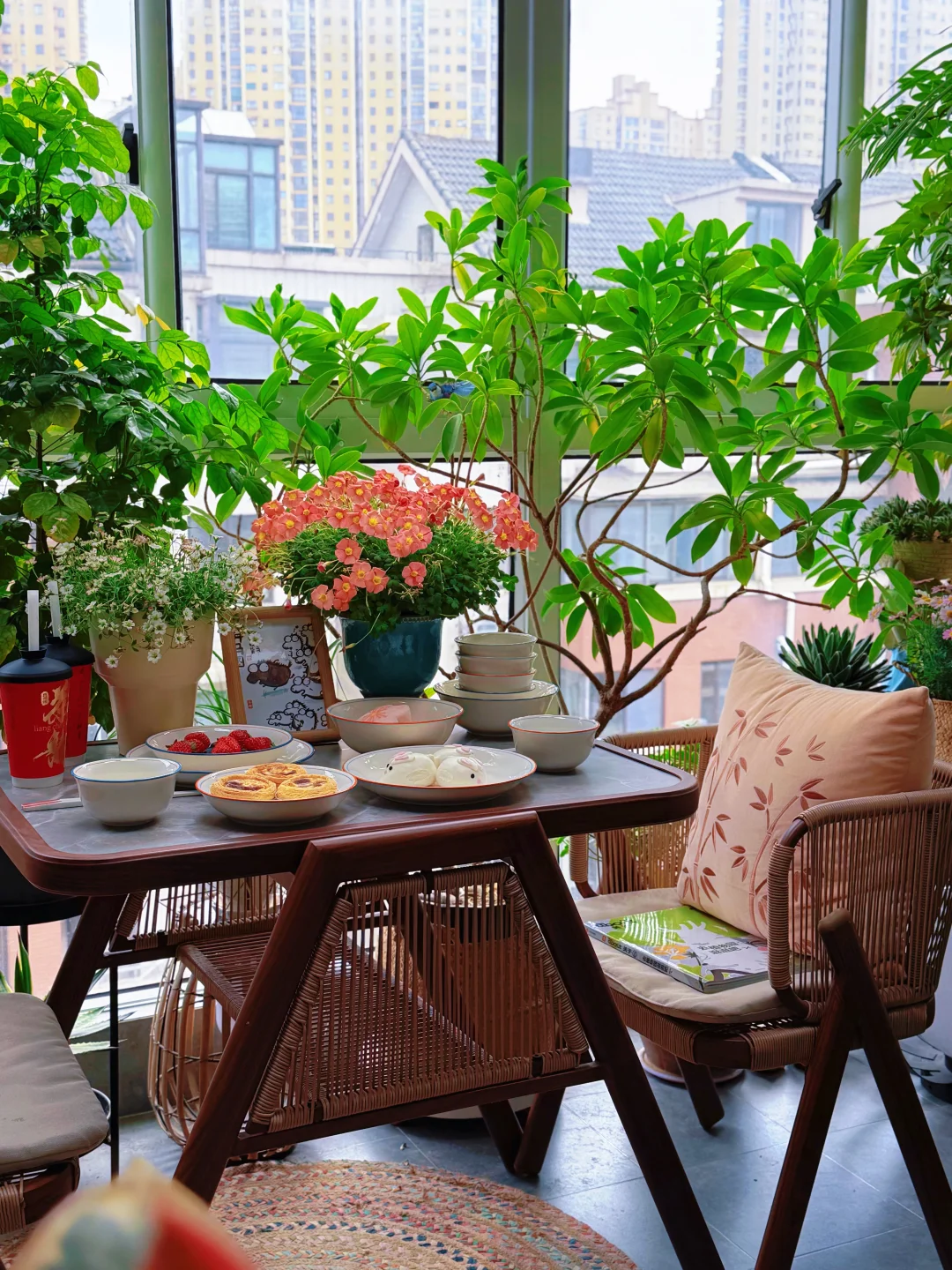 🌿🌿🌿 不用奔赴山野 也能拥有一整个春天 在自家阳台打造的秘密花园里 被满盆绿意和温柔晨光包围 连风都带着淡淡的花香 不用去网红店排队 这里就是我的专属治愈角落 一盘可爱的兔子点心 几颗鲜甜草莓 往藤椅上一瘫就能把整个春天吃进嘴里 阳光正好 绿植在旁 花香绕肩 车水马龙在窗外流淌 我在这方小天地里偷得浮生半日闲 原来zui奢侈的浪漫 从来不是远方的风景 而是把日子过成诗的细碎瞬间