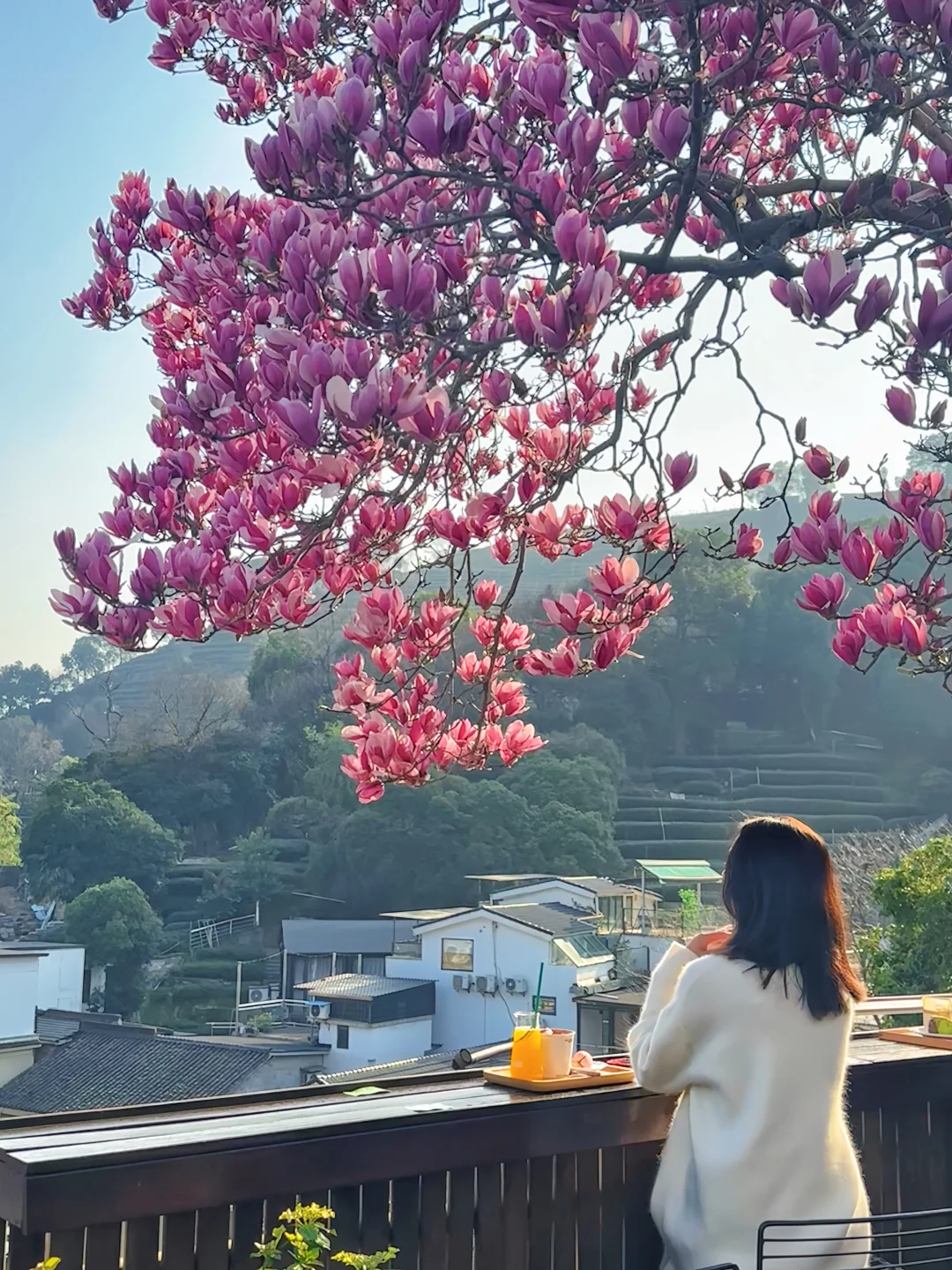在树下喝杯咖啡或是龙井玉兰茶点🍵