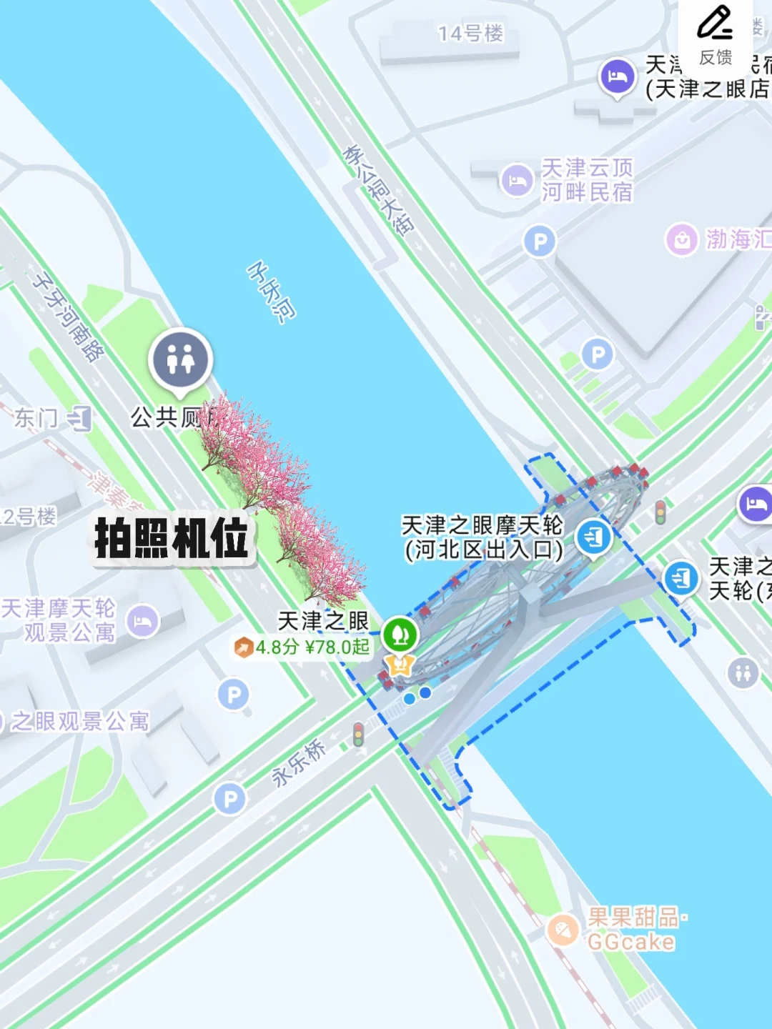 第一个发现这个机位的人真是天才 天津春日限定皮肤‼️桃花与摩天轮同框 3.18已经进入爆花期🌸🌸🌸 比桃花堤人少,巨出片🗺️地图放在P9 ➡️子牙河南路这侧,靠近wc