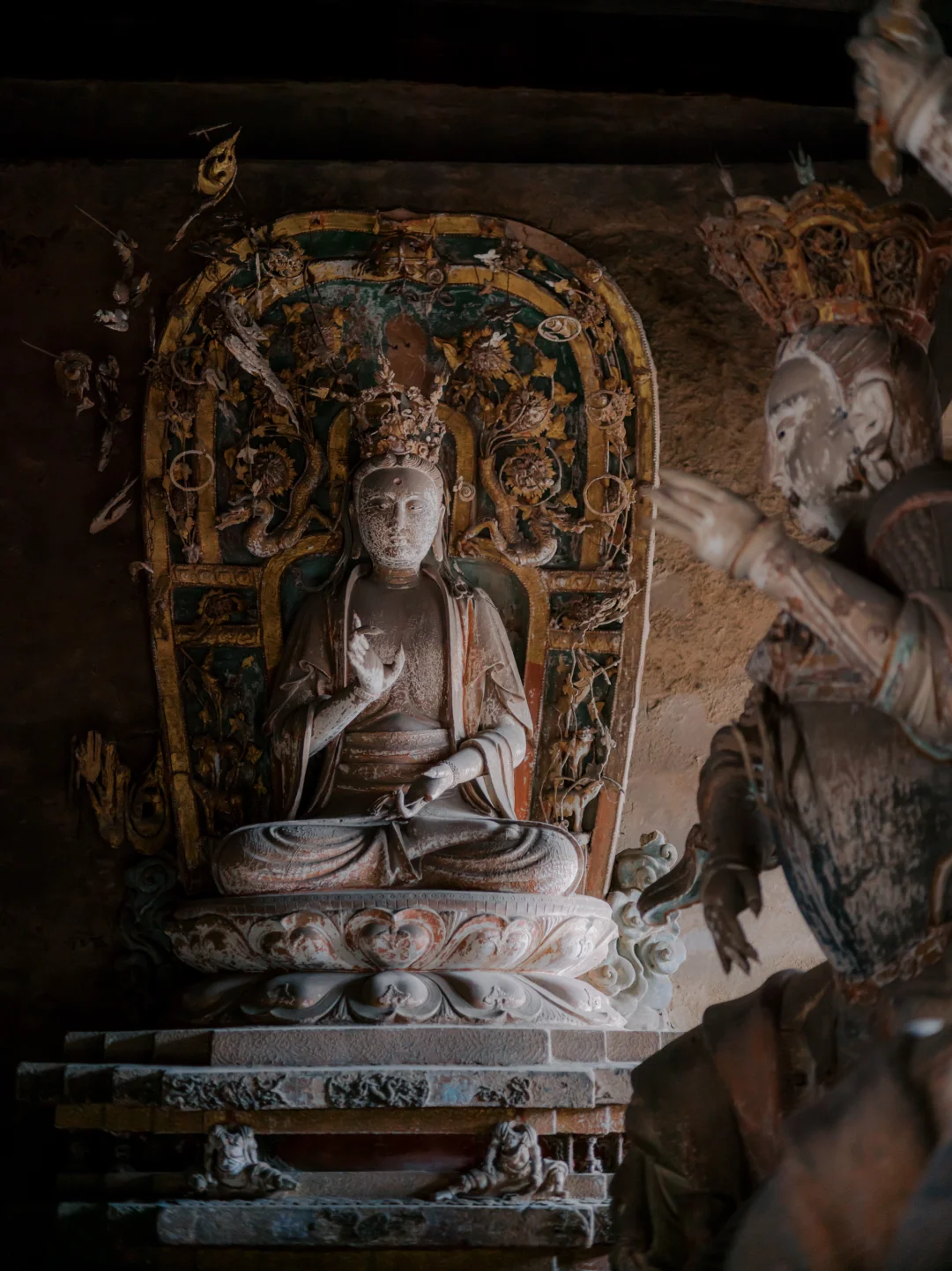 不要走马观花!精美绝伦泥塑和壁画必须得慢慢的欣赏,寺庙里面不允许开灯,刚进去里面挺黑的,但是在里面眼睛适应一阵子,什么都可以看的清清楚楚,绝对是张着嘴看完全程😂可以随便拍照的,切记不要🙅开闪光灯📸!!至于佛喜不喜欢被拍,那你自己和祂沟通吧😂