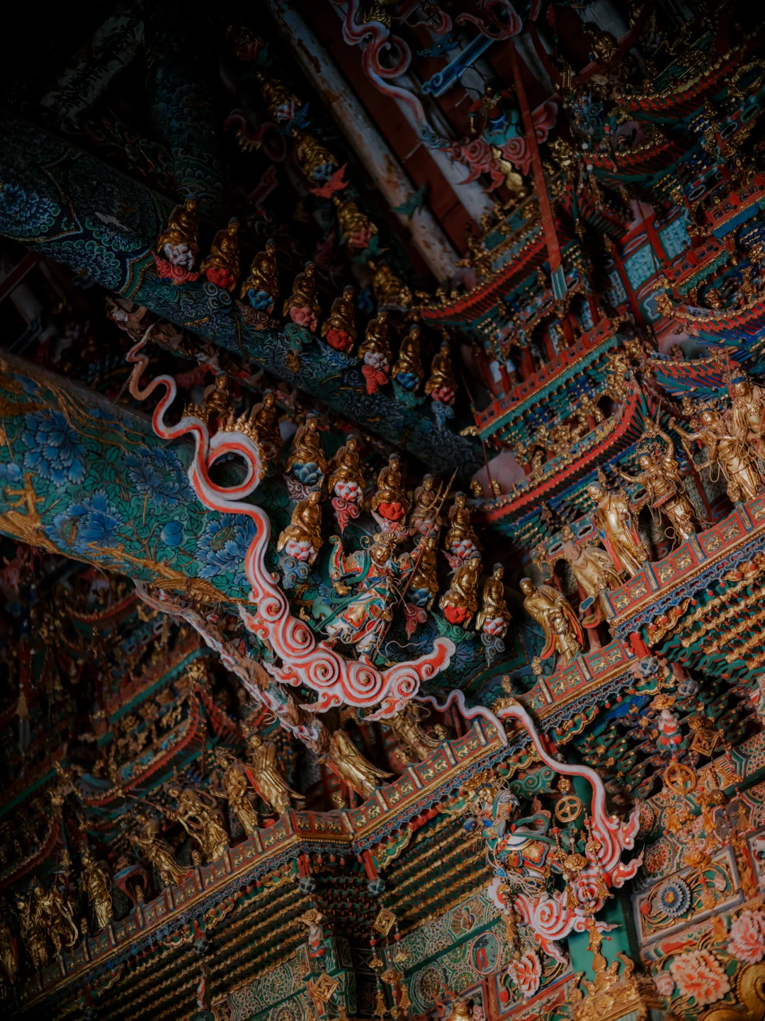 小西天是我们去的三座寺庙里游客最多的,主要精美绝伦都集中在一个大殿里,然后又特别特别集中,都密集恐惧症了,但真的是必须亲临其境才能感受到那扑面而来的震撼!