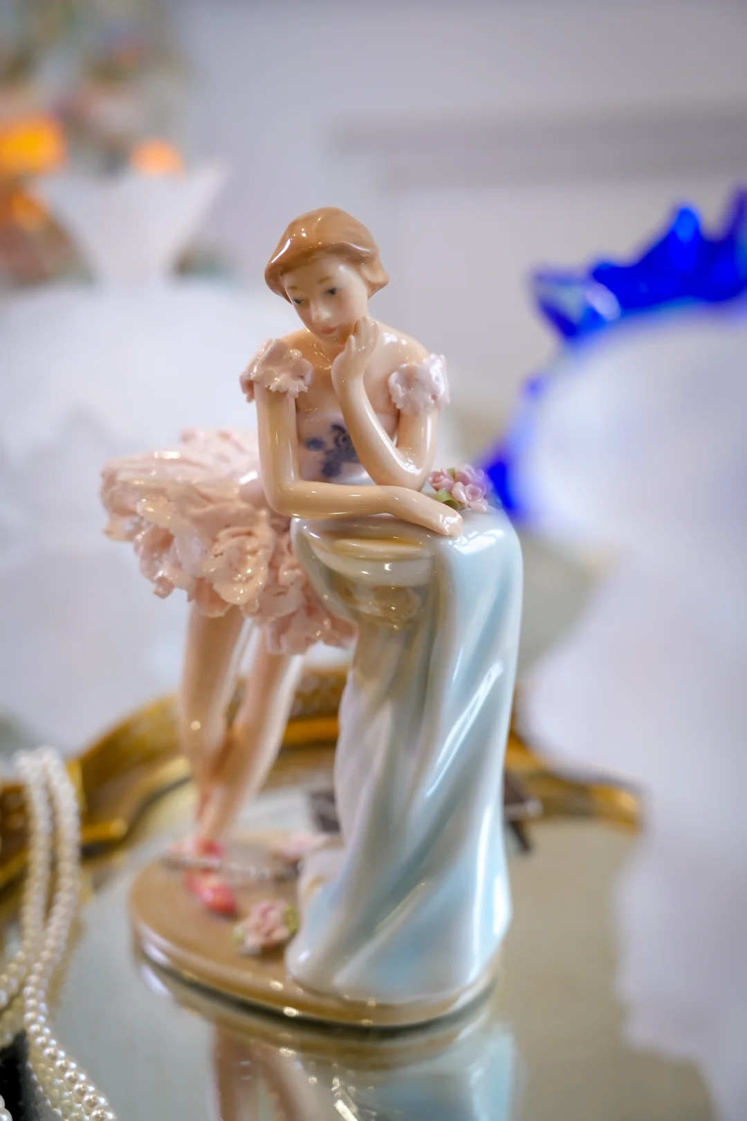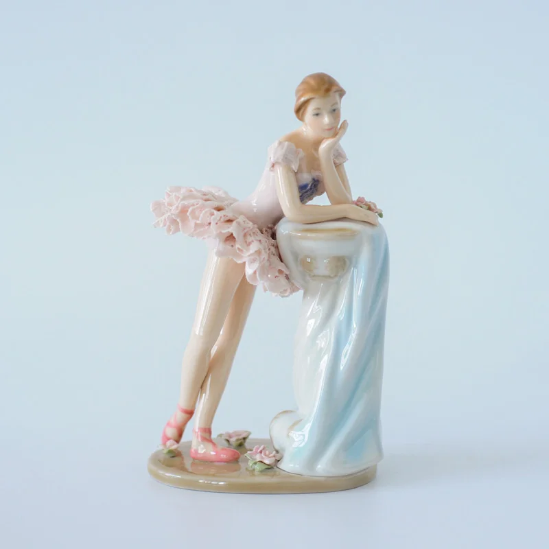 新骨瓷的温润质感,捧在手心像握住一小片云。 蕾丝裙摆全手工捏制,每一道褶皱都藏着匠人的呼吸。 芭蕾舞者托腮的瞬间,连表情都栩栩如生。 放在书桌一角,阴天也能被这份温柔治愈。 学芭蕾的女孩收到它,眼睛亮晶晶的样子一定很动人。
