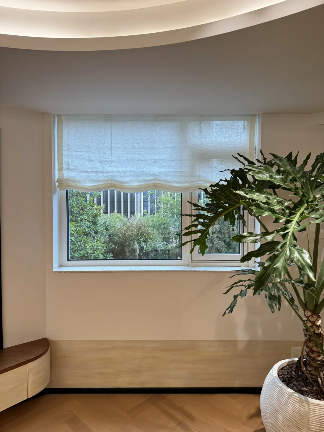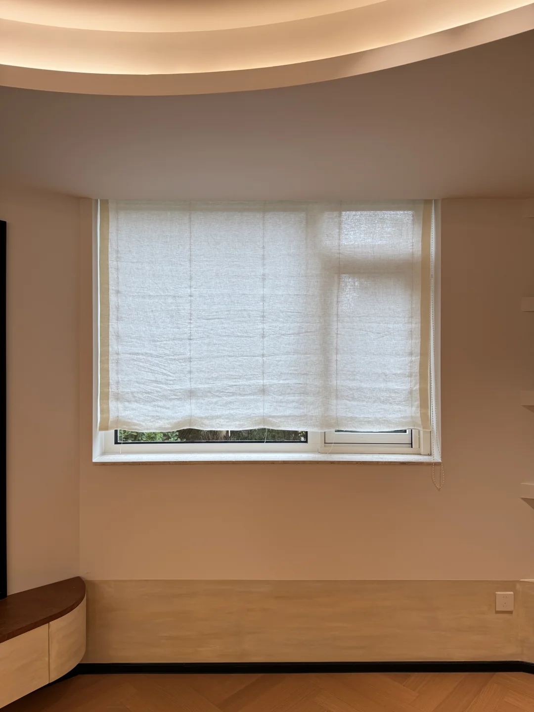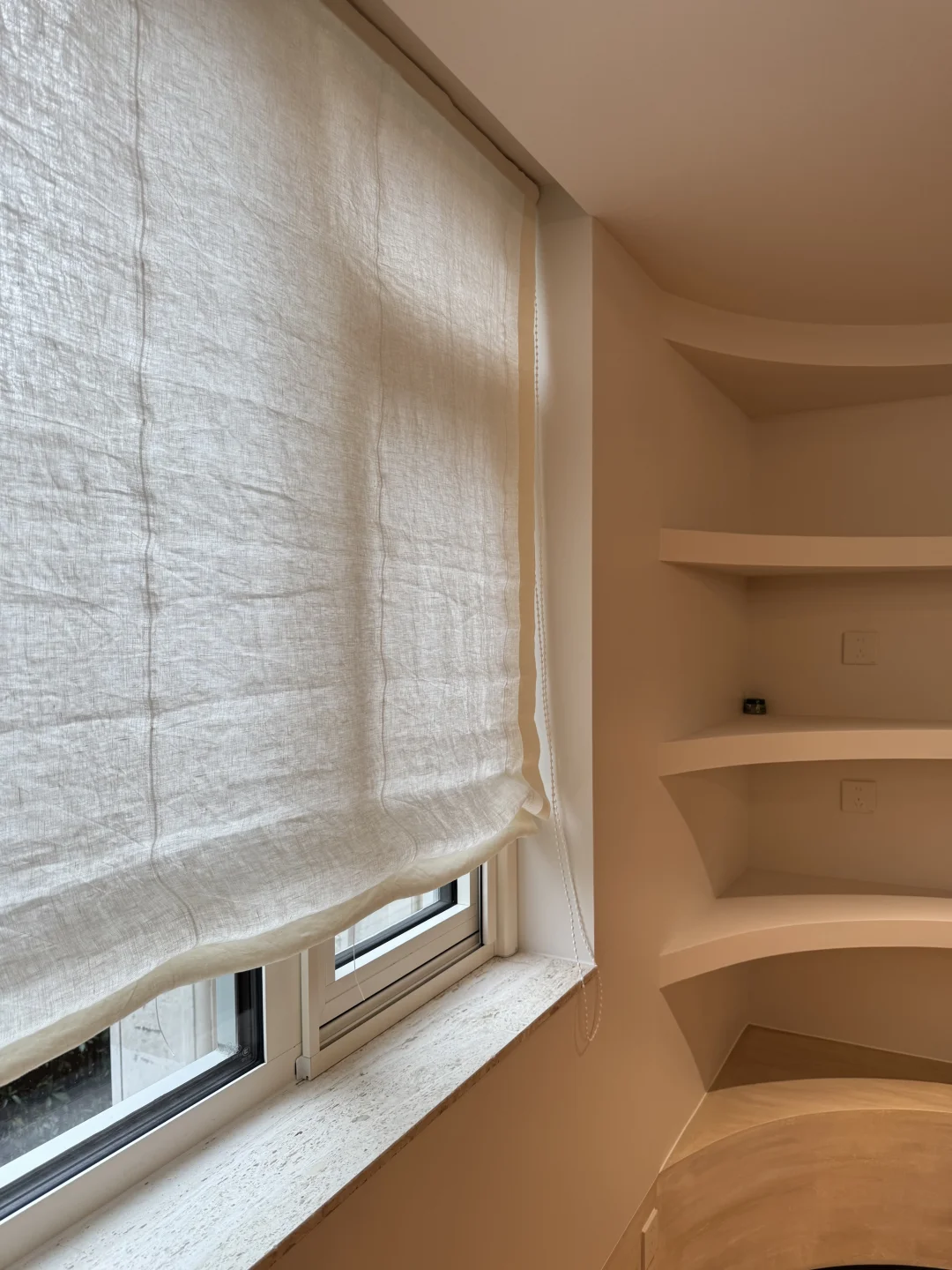 手动的纯亚麻柔式罗马帘,要配立川的半自动轨道才完整~[捂嘴笑R]