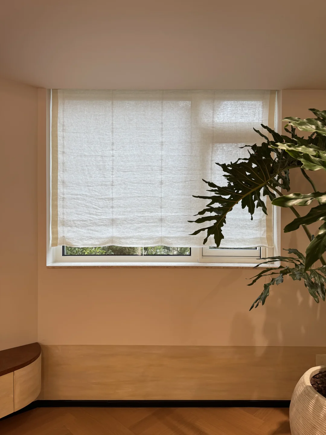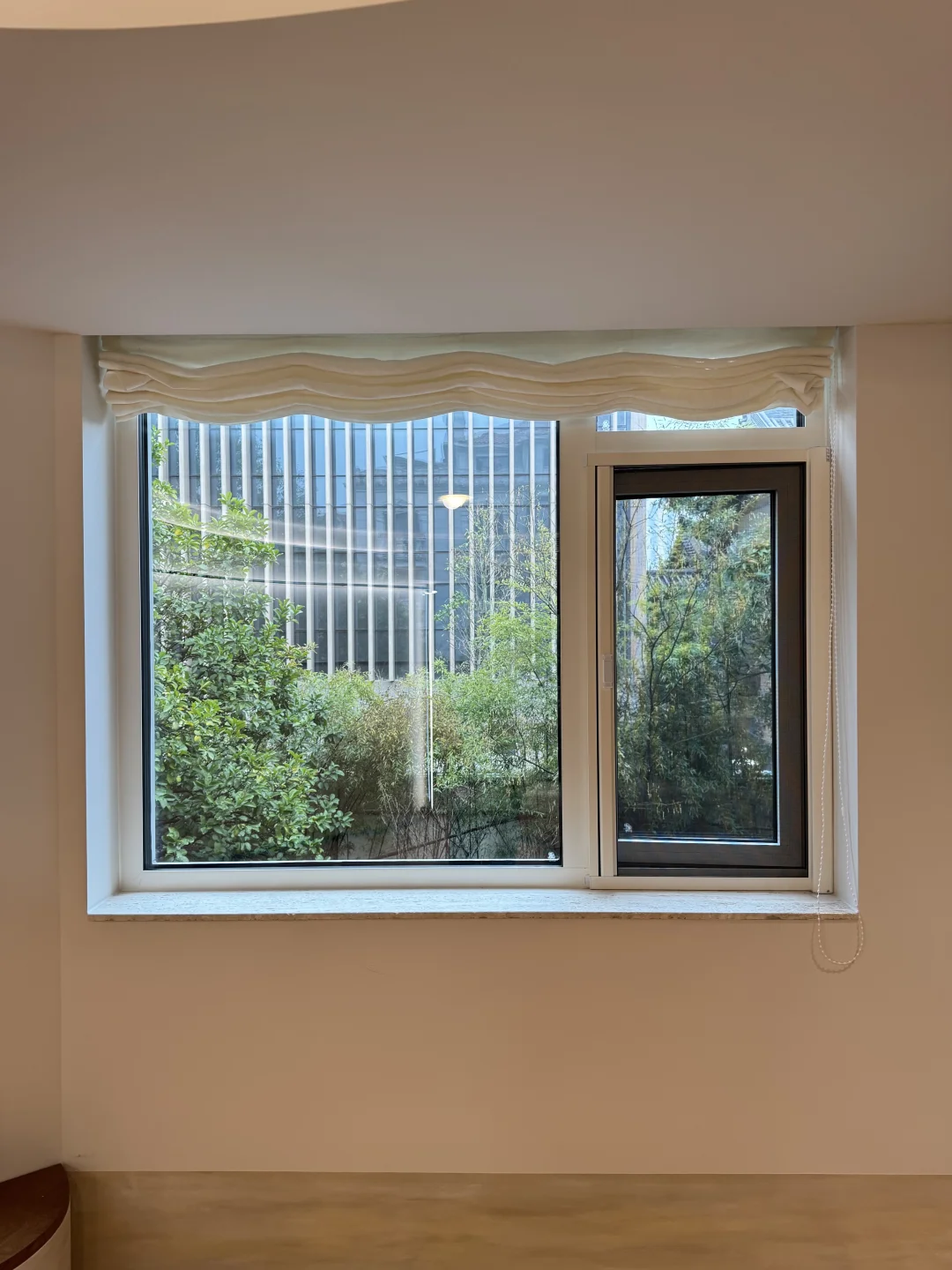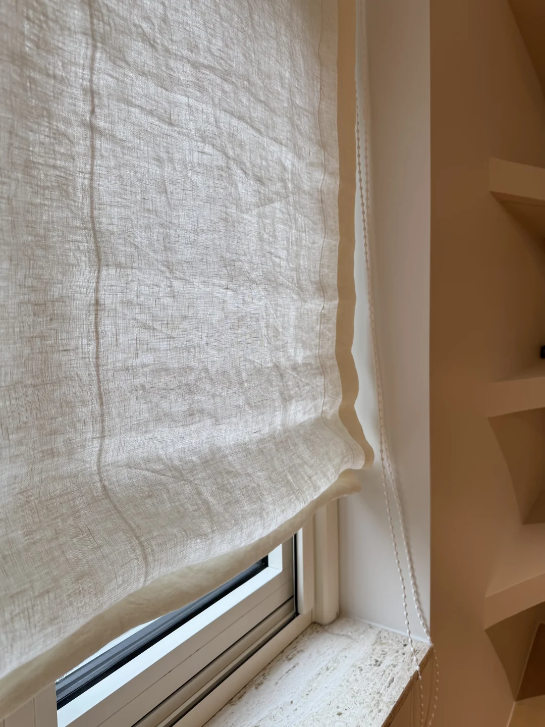手动的纯亚麻柔式罗马帘,要配立川的半自动轨道才完整~[捂嘴笑R]