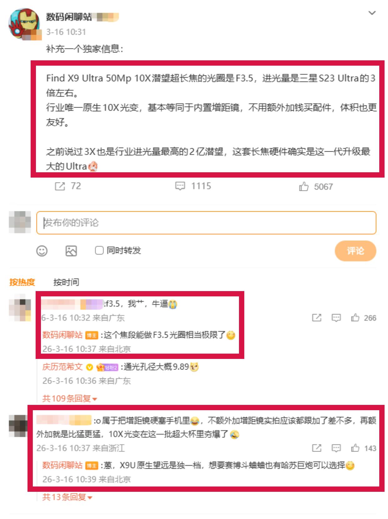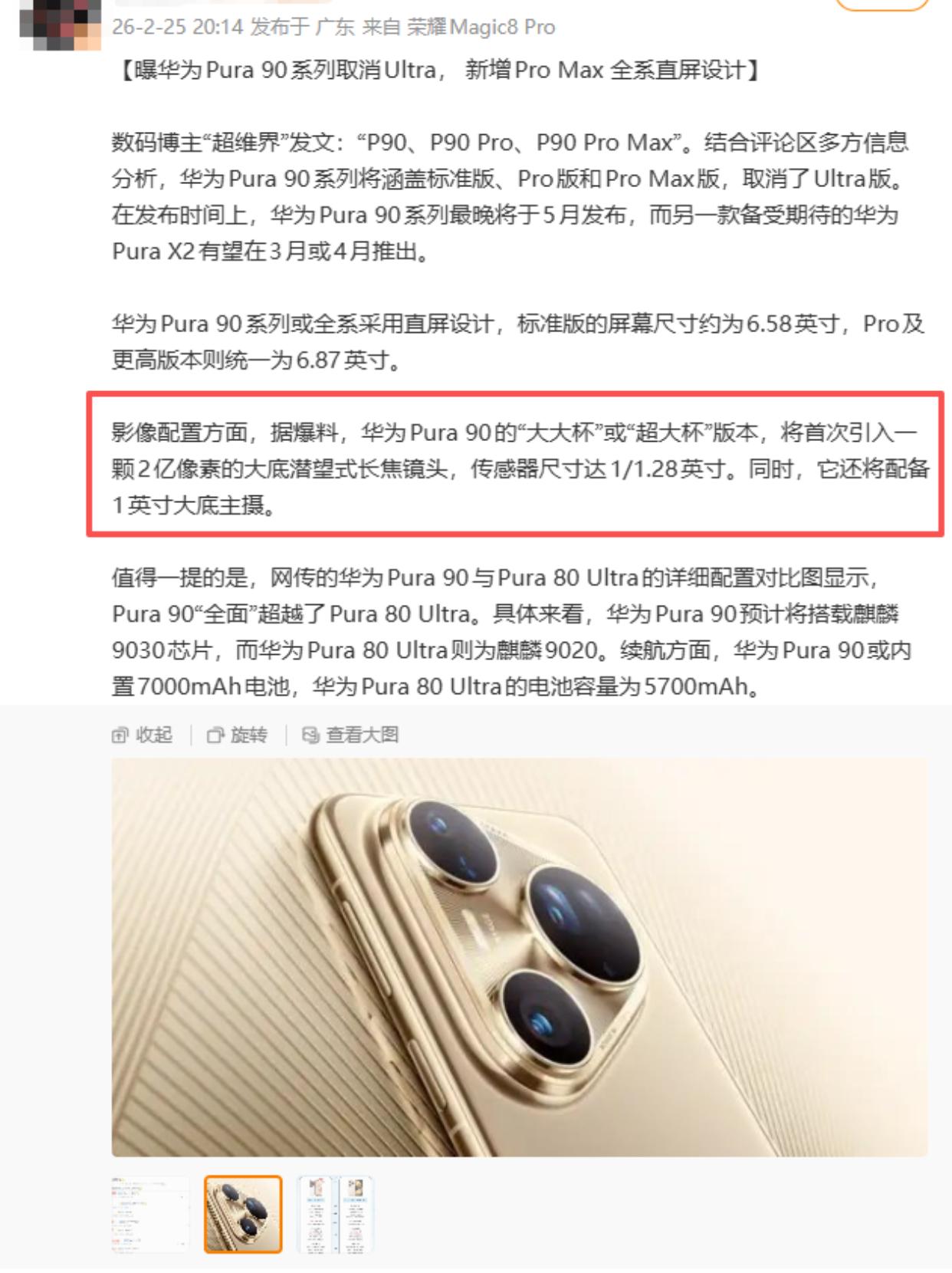 单反要吃灰了!今年换超大杯盯准这几台 研究了一圈今年手机圈的新机,接下来的超大杯真的是“诸神之战”,有几台甚至可能让你的单反相机吃灰!给大家汇总一波! 如果你是离不开苹果生态的iOS党,上半年就是iPhone 17 PM了。影像算稳扎稳打,不过要是不急,建议等等秋天的iPhone 18 PM,看爆料说主摄和长焦会有大动作,完全可以蹲一波。 用惯鸿蒙的花粉,可以直接把目光锁定在4月的Pura 90 Ultra。看最新的爆料,这代的2亿像素潜望长焦和可变光圈又进化了。按华为一直以来的调性,抓拍和整体质感客观说还是非常值得期待的。 如果是安卓阵营,那么OV两家的超大杯也是神仙打架。 先说蓝厂的X300 Ultra,新机镜头底确实超级大,据说还有两款增距镜可选。但貌似光圈反向调整变小了,实际拍出来效果怎么样,还得等发布后的真机实测。 OPPO这边是Find X9 Ultra,数码闲聊站表示是同期升级zui大的Ultra,有2亿大底的3倍潜望,外加原生的10倍光变,据说进光量暴增,而且这可能让你的相机吃灰,出门不想带镜头,直接用Find X9 Ultra内置的10x光变远拍,可以随时拉长焦,而且更便携更好操作。 反正感觉这波26年的超大杯是真的要把单反逼上绝路了,不知道你们比较期待哪一家的超大杯呢?