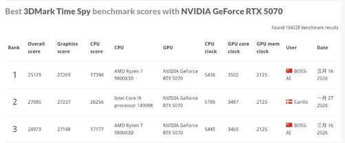 近日,根据3DMark官网测试数据,技嘉RTX5070GAMINGOC12G魔鹰显卡在TimeSpy项目中取得27269分的优异成绩。在室温25°C环境下,该卡核心频率极限稳定运行于3.5GHz,充分展现了技嘉先进的散热架构与强大的核心调校实力。