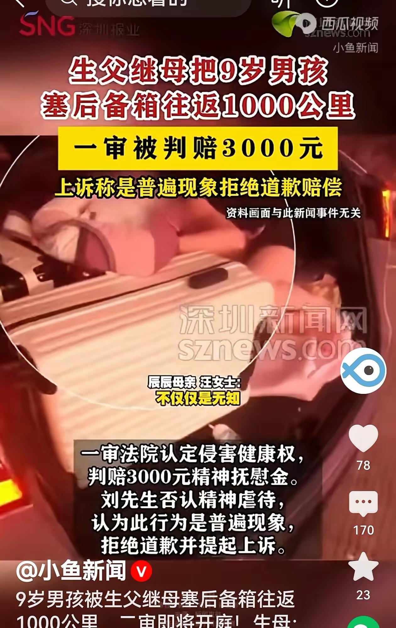 广东佛山惊魂后备箱:9岁亲儿蜷缩千里高温路,生父拒道歉称“普遍现象”,二审在即全网激辩亲情天平! 那个本应被捧在手心的9岁男孩,在三十多度的高温天里,像一件多余的行李,被塞进了越野车的后备箱。旁边还挤着一辆婴儿车。车窗外,是他的父亲、继母、爷爷奶奶,以及继母带来的孩子,他们在空调车厢里谈笑风生。这趟往返近1000公里的“家庭旅行”,成了刻在孩子心里一道冰冷的里程。 当生母汪女士得知真相时,她的愤怒与心痛穿透屏幕。一个母亲最本能的反应,是要把孩子从这种令人窒息的“排序”中夺回来。她成功了,变更了抚养权。但她要的,不止是孩子回到身边,更是一声道歉,一个对“错误”的承认。然而,生父刘先生的回应,却比后备箱的闷热更让人心寒。 他抛出三个“理由”:孩子同意了,越野车前后通透,并非全程如此。他甚至强调,那是他亲生的孩子,每年花费五万读私立学校,他“非常好”。这些辩解,像一层层试图包裹事实的包装纸,却遮不住最核心的残酷:在资源有限时,亲生子被默认为可以牺牲的那一个。这不是无奈,这是一种经过权衡的放弃。 更令人愕然的是,一审判决其行为侵害孩子健康权,需赔偿3000元精神抚慰金后,这位父亲选择了上诉。他的理由是:“这是普遍现象”。这句话,瞬间点燃了公众的怒火。将一种显而易见的危险与不公,用“普遍”二字轻描淡写地合理化,这何止是对自己孩子的二次伤害,更是对公序良俗的挑战。 法律条文清晰写明,汽车后备箱禁止载人。这不是家庭内部可以“商量”的空间。一脚急刹,没有安全带保护的孩子会面临什么?任何一个有基本常识的成年人都应知晓。用“孩子同意”来开脱,实质是将监护责任推卸给一个无法真正行使选择权的未成年人,这是成年世界最怯懦的甩锅。 网友的评论撕裂了两种价值观。一方痛斥“有后妈就有后爸”,为孩子的遭遇与心理创伤鸣不平;另一方则试图“理解”父亲的“两难”,认为在重组家庭中“亲生子让一让”是维持表面和谐的“智慧”。这场激辩,早已超越个案,直击重组家庭中亲子关系的复杂伦理、情感天平的倾斜,以及“表面和谐”背后可能隐藏的无声伤害。 明天,二审即将开庭。我们关注的,远不止3000元赔偿或一纸道歉。我们等待一个答案:当血缘亲情与新的家庭关系产生摩擦时,那个最弱小的孩子,其安全与尊严,是否应该成为最先被妥协的代价?这个父亲的坚持,能否撼动法律与人心共同守护的那条底线? 家庭教育 重组家庭