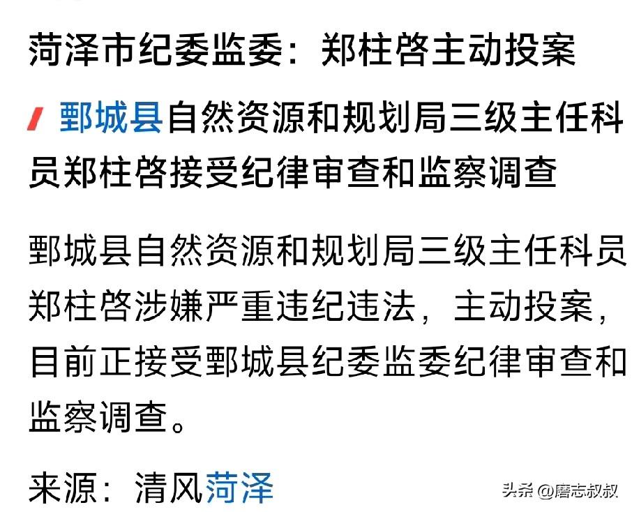 山东省巡视组真正的利剑出鞘行动! 前几天刚听说山东省巡视组正在菏泽市开展巡视工作,对下辖牡丹区、郓城县、鄄城县、东明县作为主要突击对象。 紧接着东明县教体局原党组书记、局长王仲五主动投案。 菏泽市鄄城县自然资源和规划局三级主任郑柱啟主动投案。 要不说领导的眼光就是长远,吃亏沾光一点都能看出来,主动投案又能少判几年。
