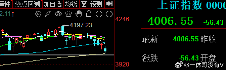 猫一天,狗一天,上演黑色周四当所有人都认为要变好的时候,大A就是这么反人性的,又下来了。本来想今天会碰到60日线争夺的,没想到外围美联储鹰派信号延期降息,及中东美伊开打20天局势升级外溢等直接打乱了节奏,昨晚欧盟及亚太日韩股市大跌,让大A低开34个点,全天震荡走低再次来到了4000点,因美伊局势升级让石油燃气天然气电力等防御卡位板块领涨,导致分化效应,昨天领涨的题材休整,尽管有国资云,算力租赁等概念领涨,但没有形成气候,盘中震荡走低一度来到破了2月3日4002点后出现反弹,互联网金融护盘出手,同花顺,银之杰银信科技赢时胜等多股反弹领涨。可惜量能不给力,资金谨慎明显,尾盘又拉起中国石油,跷跷板效应把情绪降至冰点,破了4000点,最低3994点,尾盘收4006点,上下影阴线技术上,4000点心理关口,及3983-3977点缺口,这里存在反弹需求了,不应该恐慌割肉了
