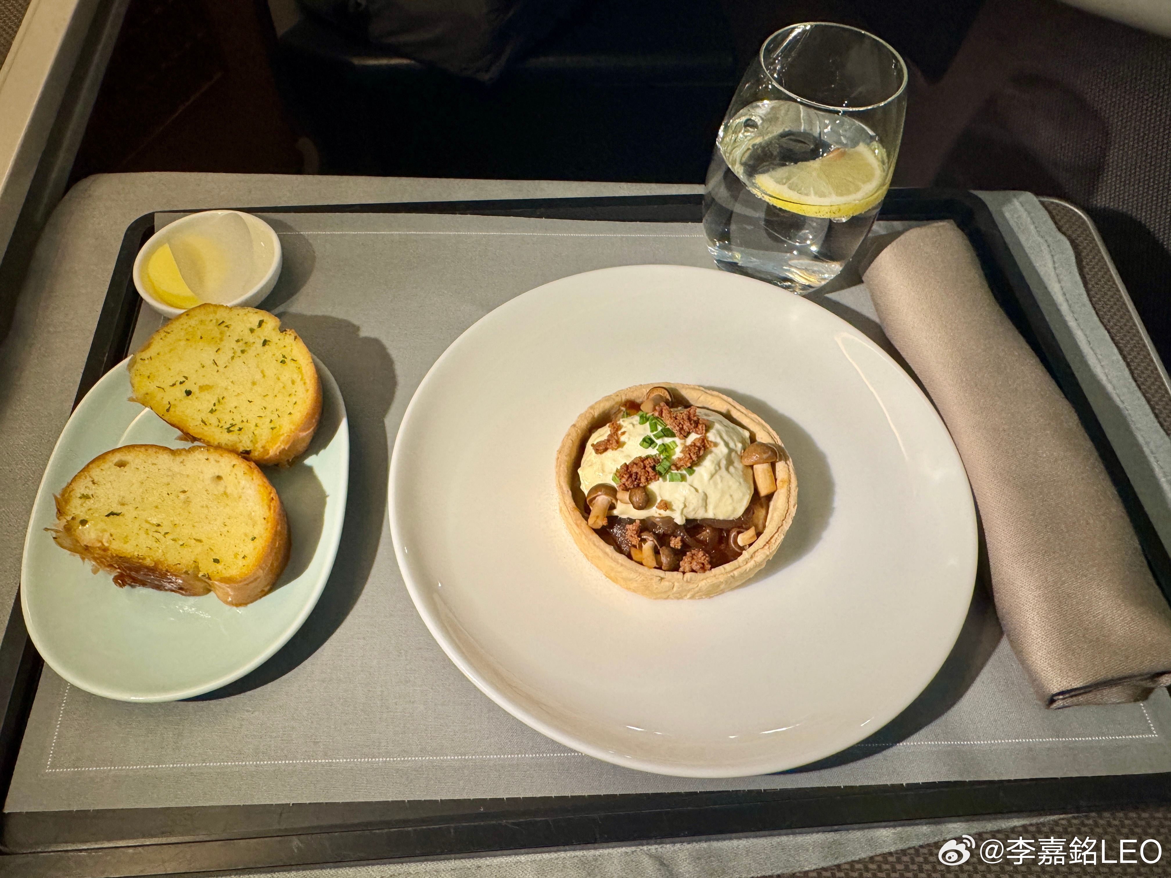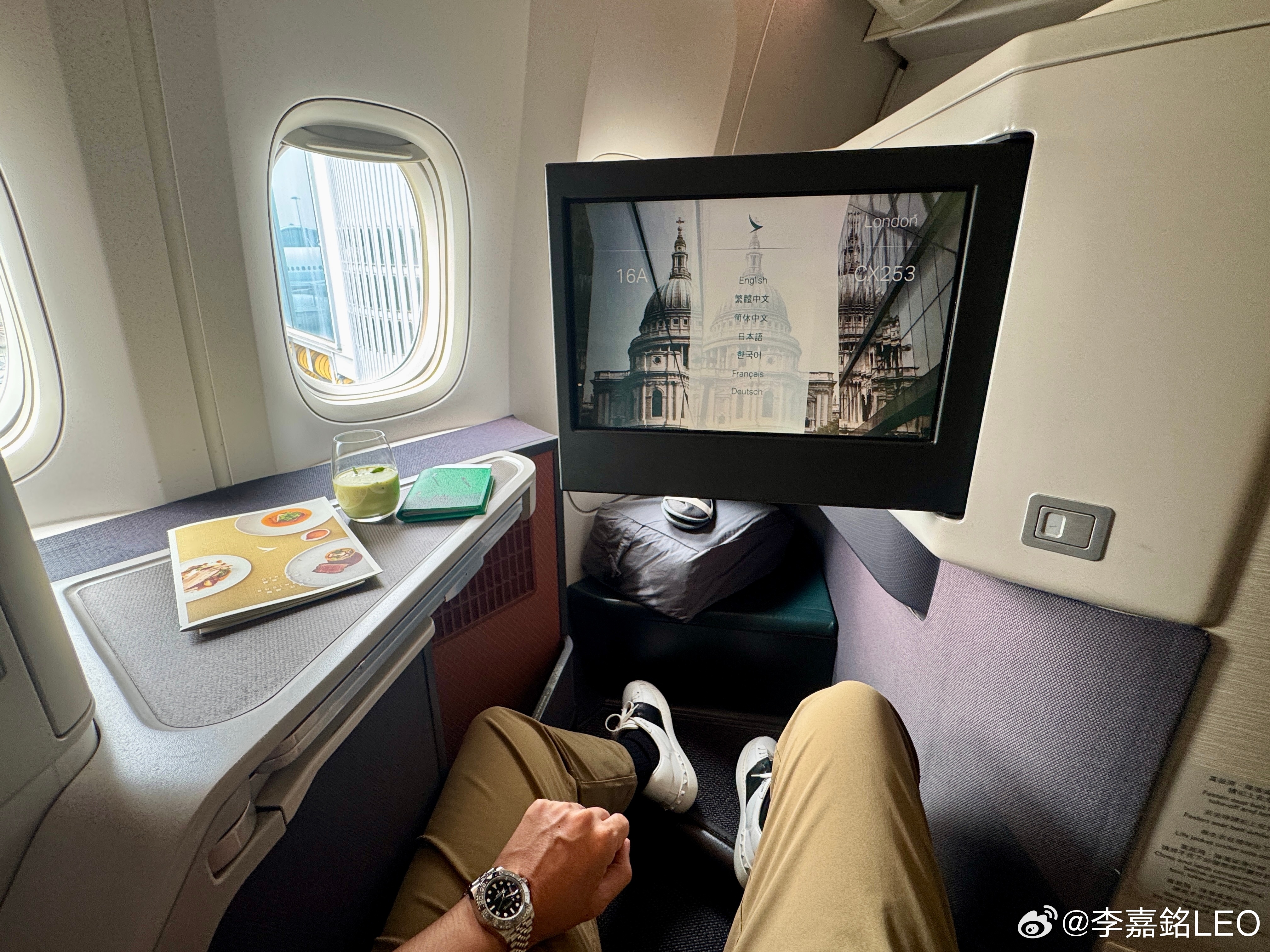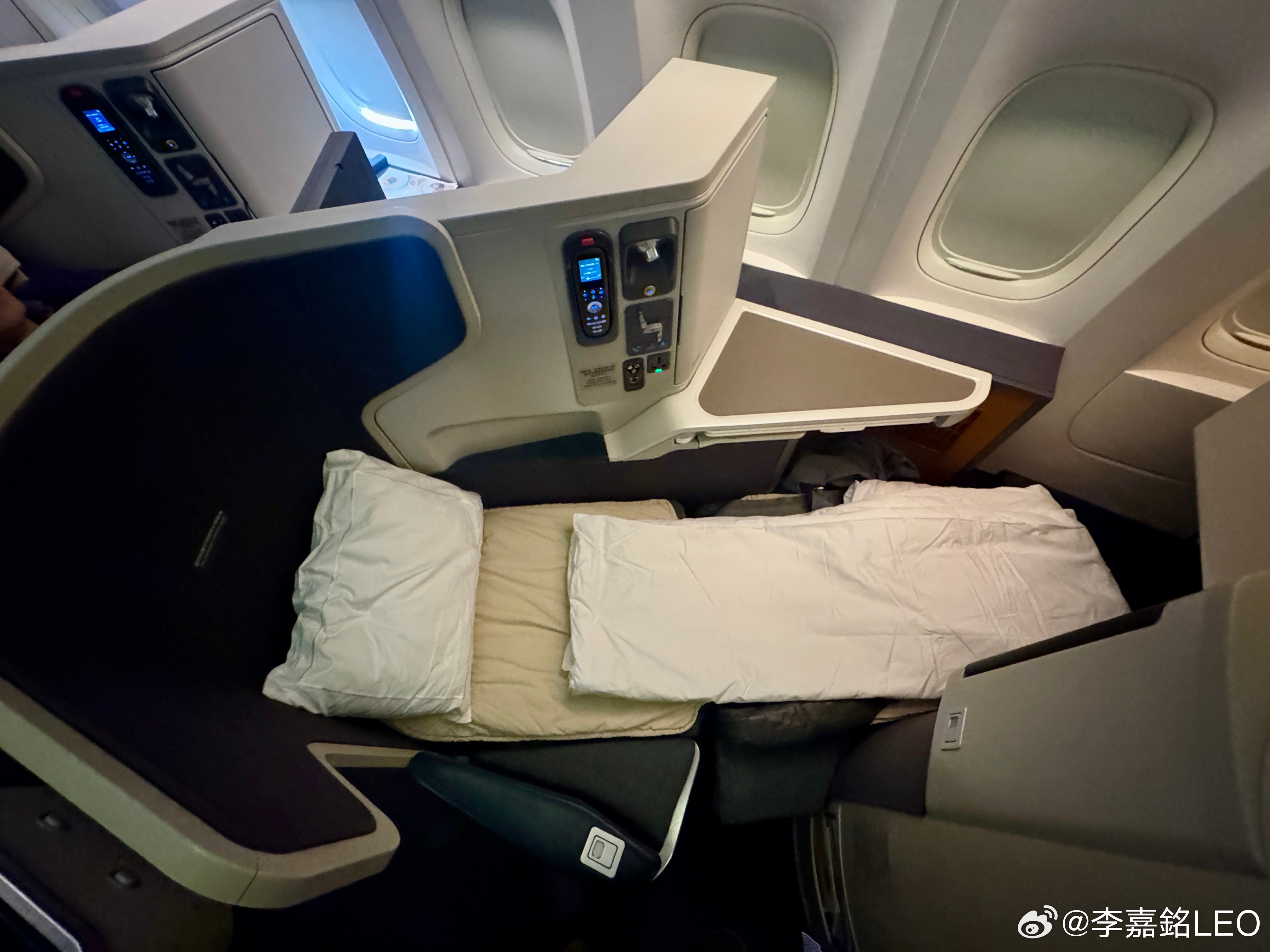 本来明年新会员制度,有2400分的冲刺任务下,是想买F,但整架飞机从头等到经济舱全部满员,还超售了一些位置,能候补到位置已经相当幸运。⸻💺 客舱本次执飞为 波音 777-300ER,带头等四舱机型,航程超过 14 小时,算是国泰比较典型的一条超长航线。商务舱满员,登机之后明显能感觉到客舱节奏比平时更忙碌。不过在服务开始后,乘务组依然保持着比较稳定的节奏。睡眠方面,商务舱提供 床垫,不过需要 自己铺设。铺上之后平躺舒适度会明显提升,在超过 14 小时的航程里,有一段完整睡眠还是非常重要的。⸻🍽️ 餐食本次航班提供 三顿主食供应。第一顿(起飞后)登机前通过在线预订了 龙虾汤泡饭。龙虾汤底鲜味比较明显,带一点海鲜甜味,泡饭口感顺滑。虽然谈不上特别惊艳,但属于 稳妥、不容易出错的选择。⸻🍜中段轻食飞行途中点了一份 麦奀记云吞面。这道其实算是本次航班的 最大亮点。虽然没有地面店里现煮的那种弹牙口感,但在万米高空能吃到一碗: • 汤底香气明显 • 云吞虾味足 • 面条也没有过度软烂在长途航班中段来一碗热汤面,体验确实很舒服。⸻落地前一餐最后一顿空姐推荐了 樱花虾海鲜炒面。整体是比较清爽的风格: • 油不重 • 海鲜味道自然 • 樱花虾作为点缀很香作为长途航班的收尾餐来说,不会太负担。⸻✈️ 小结在这次 欧洲机票极度紧张、全舱满载 的情况下,CX253 依然维持住了比较稳定的商务舱水准。有些时候,长途飞行不会想要太多惊喜,但是保持水准就是一种很好的体验。
