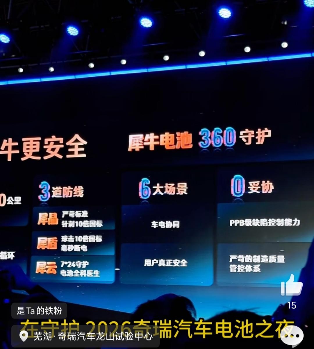 迪子的闪充和二代刀片确实刺激到友商了,这不奇瑞的犀牛电池来了,充电8分钟跑500公里,循环5000次,车开报废电池还能用,零下40℃到55℃都能用,针刺/碰撞不起火。不是ppt技术,今年第四季度奇瑞星途EX7就搭载犀牛(固液混合)电池,续航超过800km。 更厉害的犀牛固态电池能量密度400Wh/kg,未来600Wh/kg,明年量产星途 ES8首搭全固态电池,续航1500km、5分钟补能500km,彻底告别续航焦虑。 关键是奇瑞的犀牛电池有短刀、方壳、大圆柱等等方案,主打一个你有我也有。 犀牛电池能不能撼动刀片电池的霸主地位?
