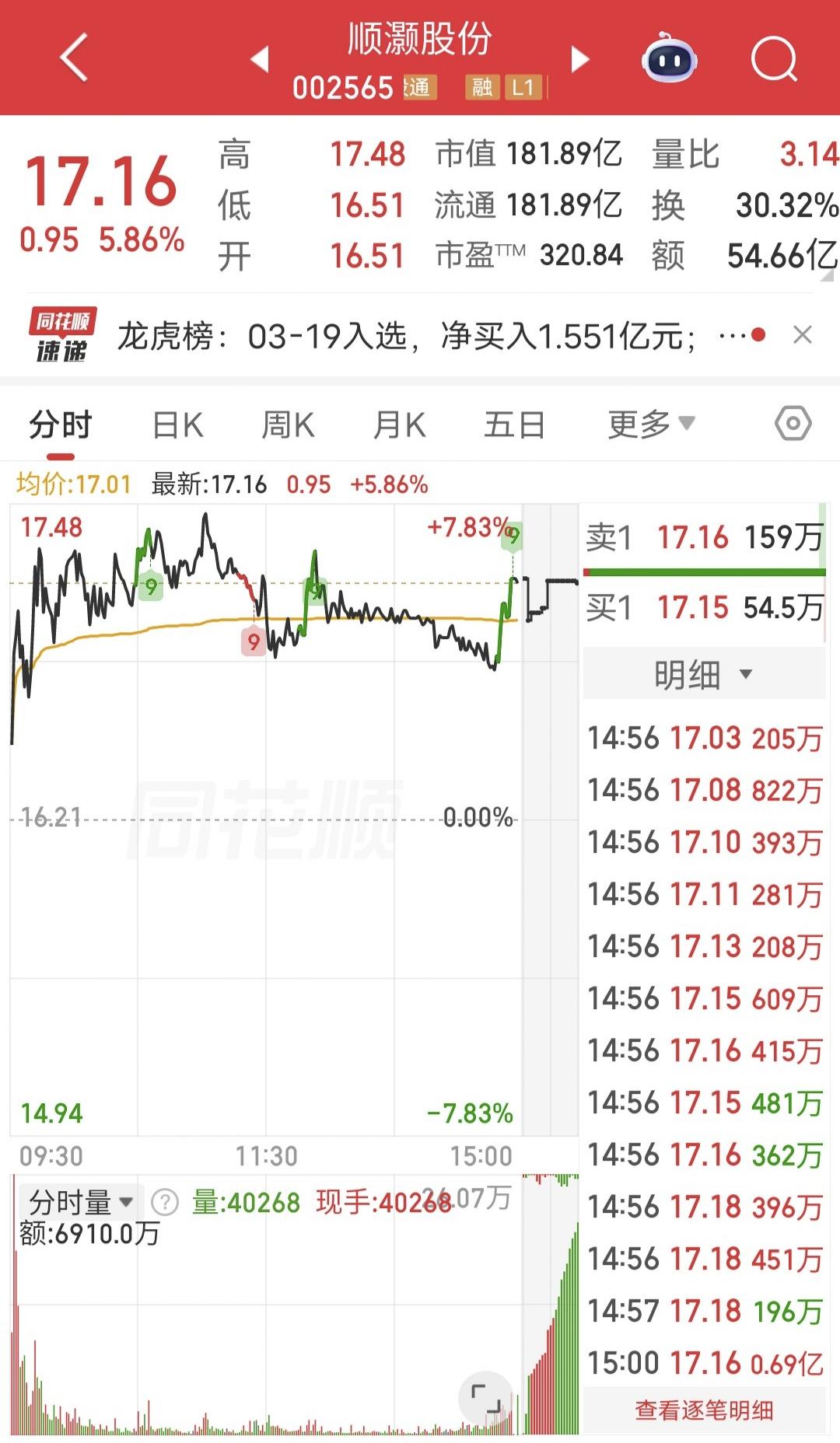 章盟主爆买1.5亿! 今天顺灏股份冲高回落。 盘后龙虎榜显示,章盟主买入1.5亿,卖出3000万做T,净买入1.2亿。 最近章盟主还是有很多大手笔买入。 游资