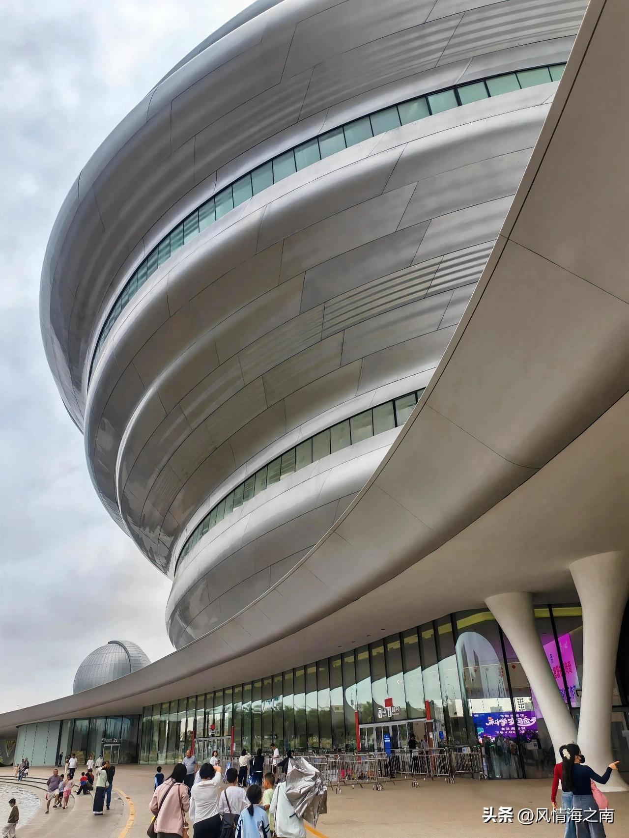 之前开车在海秀快速路,每每远远望去一个银白色的建筑物矗立在海边的旷野中很吸睛,总会问孩子象啥?孩子每次说像冰激凌,我逗趣说你就是一个吃货,你咋不说象一砣大B。 及至后来带孩子去科技馆现场,突然发觉它很像是一艘降落在地球的外星飞碟。 看了官方的说法是参考螺旋升腾的祥云。大家发挥想象,觉得象什么呢?