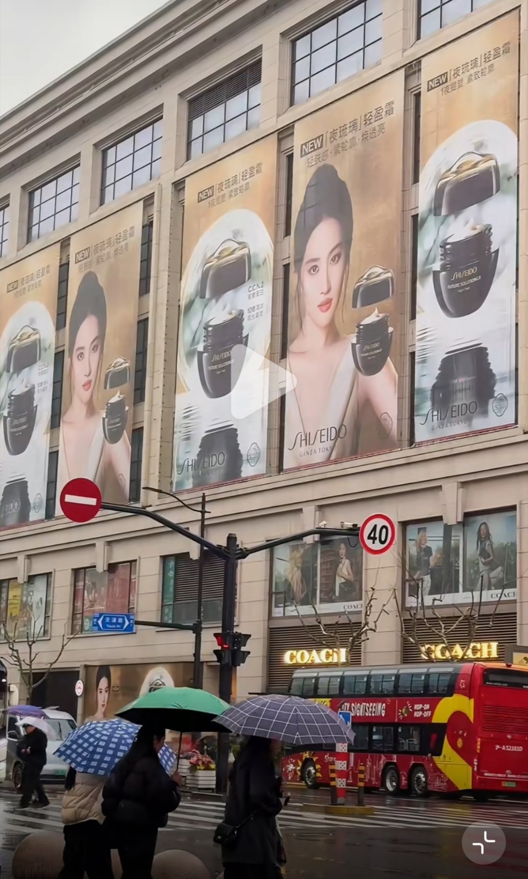 猫人追觅无缝衔接走过一条街全是资生堂,转弯遇上天梭超大硬广,还有LV,祖玛珑,珀莱雅,把上海刷成刘亦菲痛城