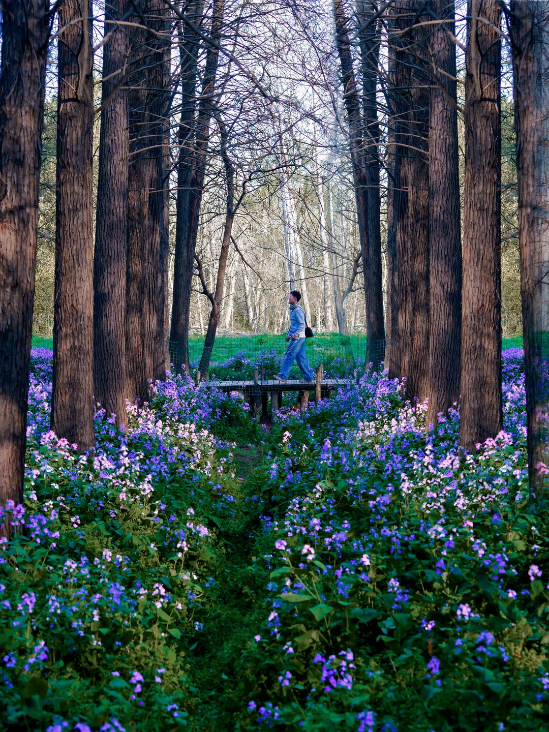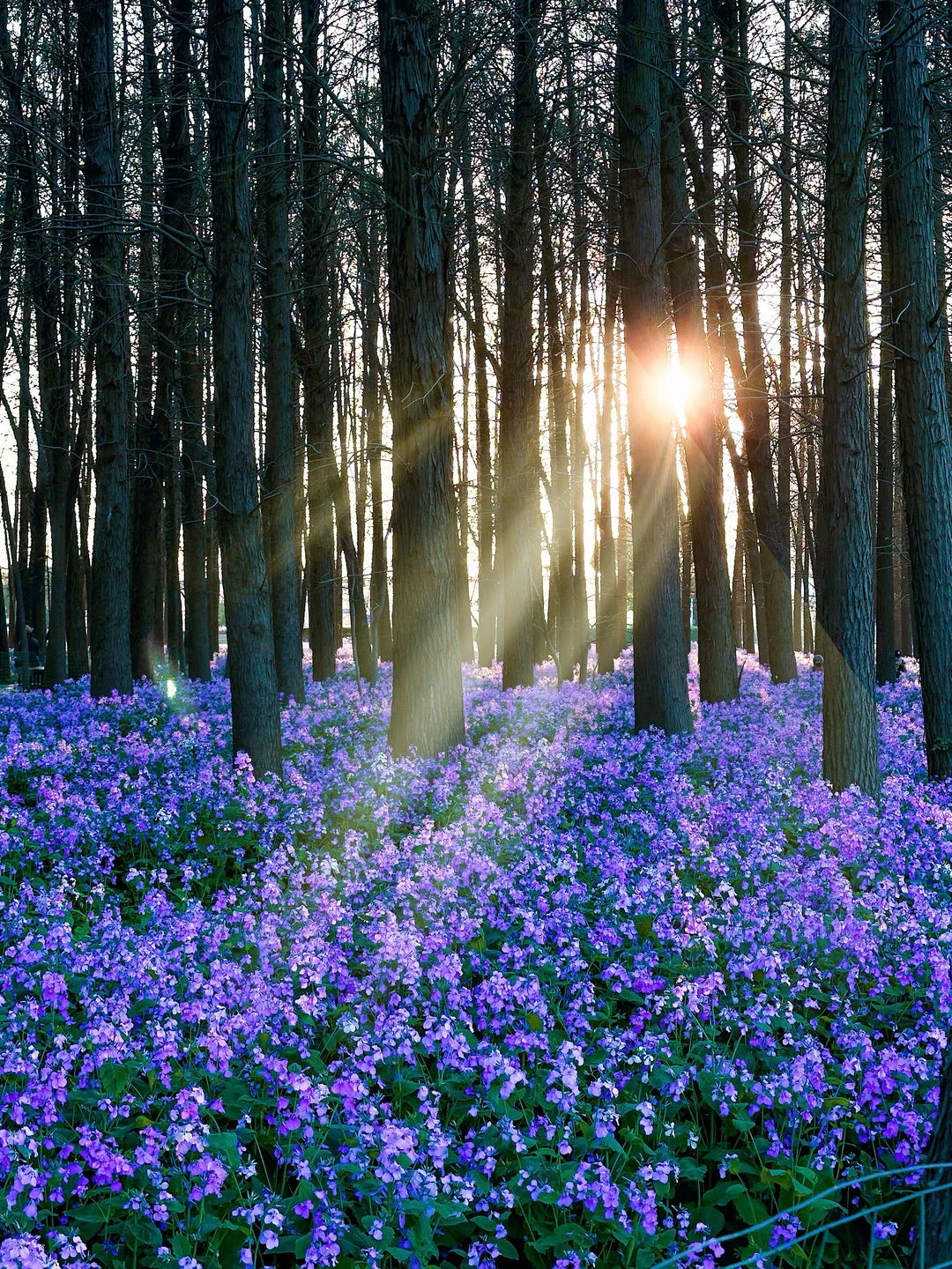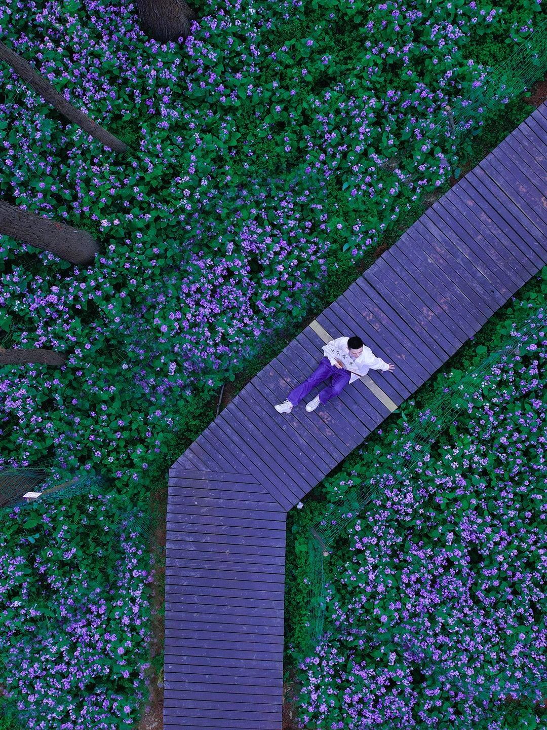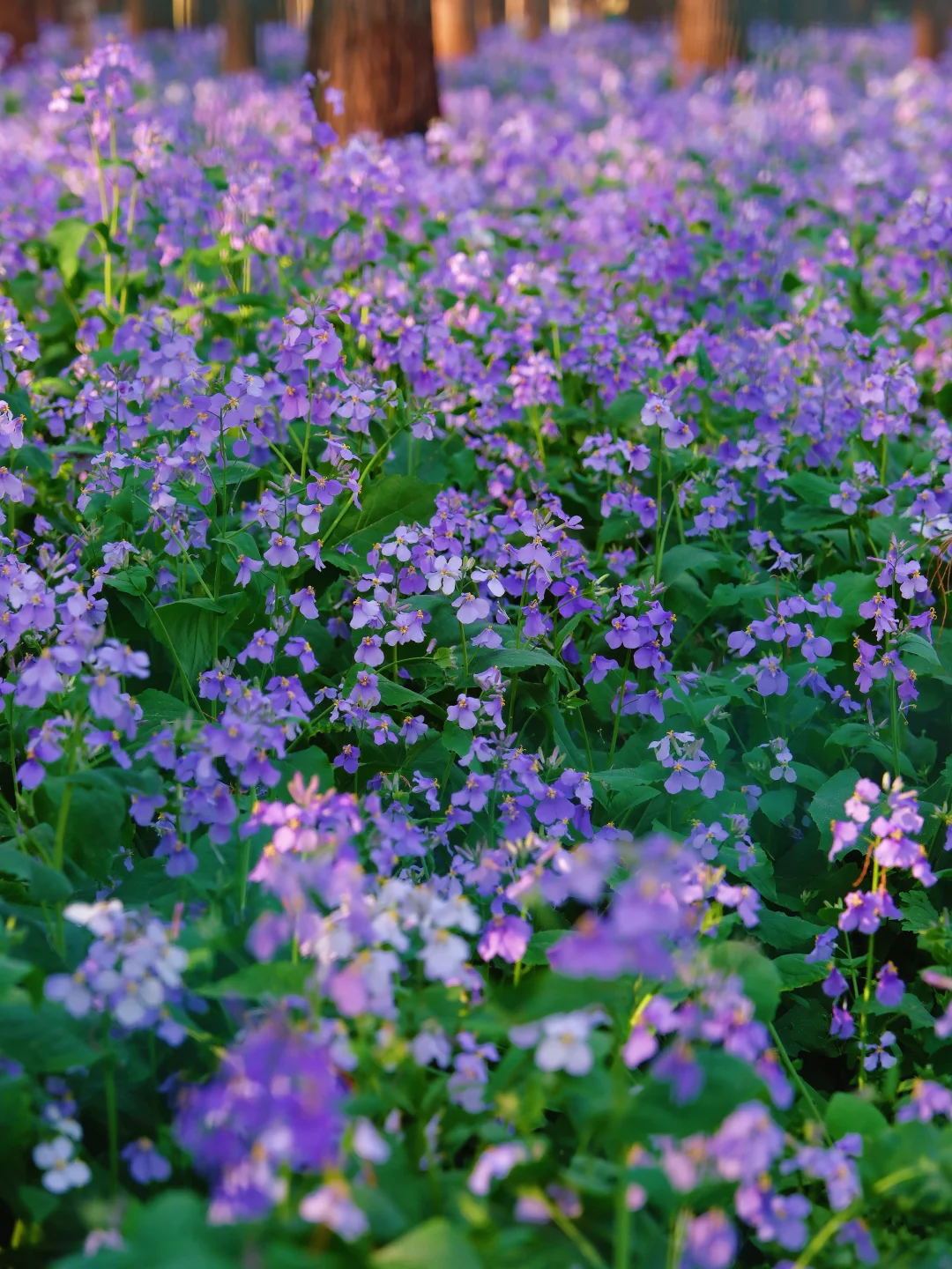 江心洲这片池杉林真的绝了! 高大笔直的杉树配上脚下一整片紫色二月兰 简直就是春日限定浪漫 📍位置:地铁10号线江心洲站2号口出,换乘486路至金陵中学站,下车就能看见对面这片秘境 📸拍照攻略: · 杉林里有木栈道,走在上面被紫色花海包围,俯拍视角绝美 · 下午三四点阳光穿过杉树,形成丁达尔光束,拍照自带滤镜 · 建议穿浅色衣服,跟紫色花海绝配! ⚠️其他小tips 周末人多,建议工作日傍晚来,还能看白鹭归巢 旁边有大草坪可以野餐 春天一定要来一次,真的会被这片紫色治愈!