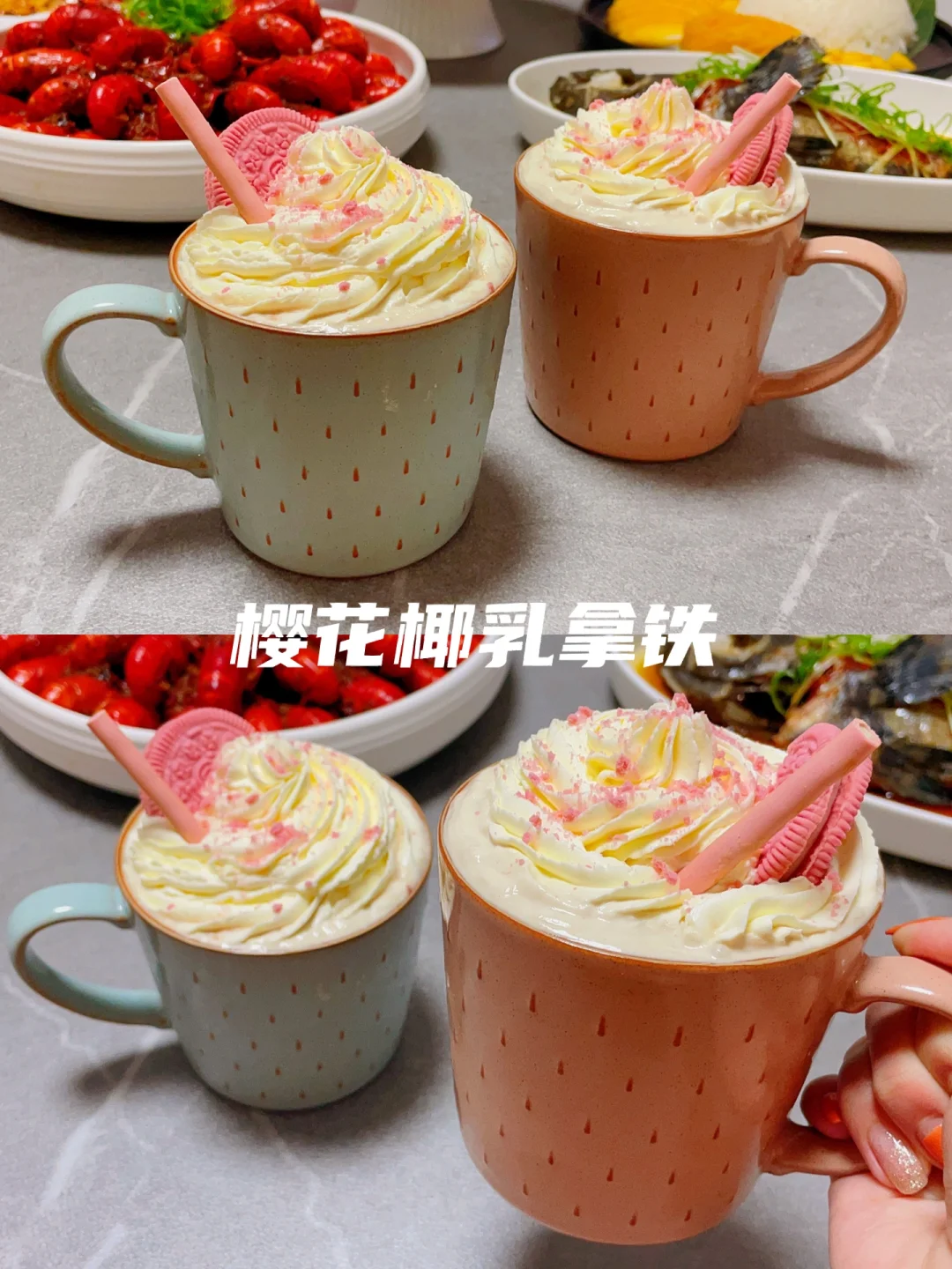 🌸饮品:樱花椰乳拿铁