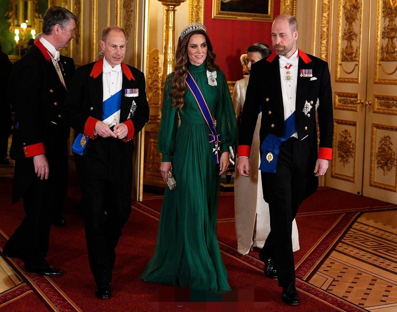 妻凭夫贵,这句话也是在凯特王妃的身上展现得淋漓尽致了! 看看这组照片,3月18日,英国王室成员集体出席在温莎城堡举办的晚宴,一起欢迎来访的尼日利亚总统夫妇。 在大家排队入场时,查尔斯国王和卡米拉王后一马当先,之后就是威廉王储和凯特王妃、爱丁堡公爵爱德华王子、安妮长公主、蒂莫西劳伦斯爵士和格洛斯特公爵夫妇。 凯特王妃虽然出身平民,但是因为威廉王储这个丈夫,排队时,她也妻凭夫贵走在安妮公主、爱丁堡公爵爱德华王子前面。 看看早已在大厅里的安妮公主夫妇也得在门口等着威廉王储和凯特王妃先入场!