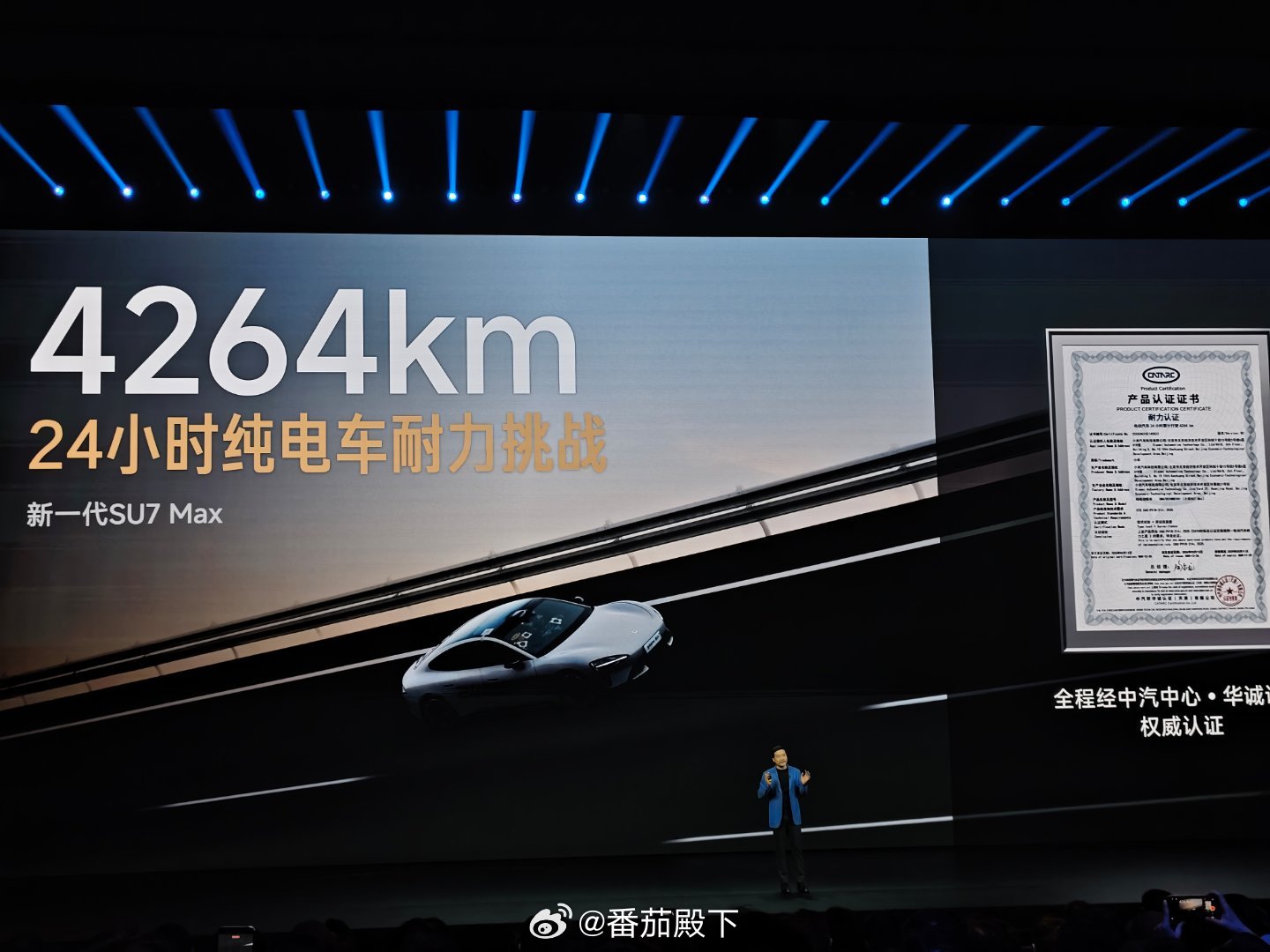 小米新SU7 24小时耐力赛4264公里,暴力快充44次,这种三电实力确实很强。