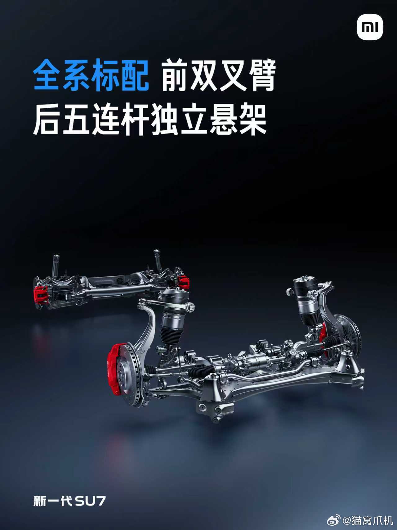新一代su7新一代SU7搭载小米蛟龙底盘,软硬件深度融合,带来精准稳定的驾驶体验。全系标配前双叉臂+后五连杆悬架,Pro/Max版配闭式双腔空气弹簧与CDC减振器。转向比12.5:1,转弯直径仅11.4m,三车道一把过。全系标配固定卡钳,电子电气架构四合一,可靠性达车规级,兼顾运动与舒适。